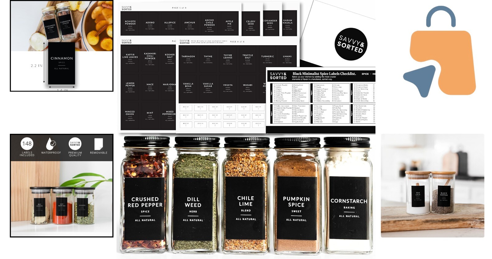 Transform your kitchen with our exquisite set of 148 Preprinted Stickers designed for effortless spice storage and organization.