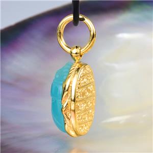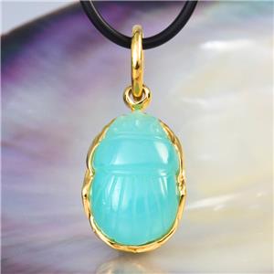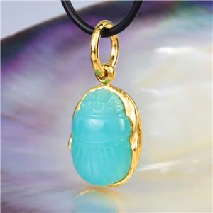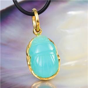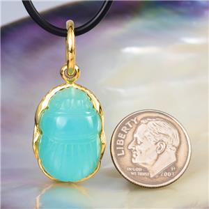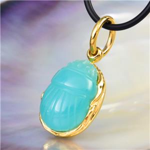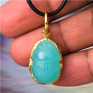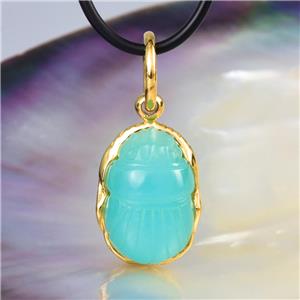 EGYPTIAN SCARAB PENDANT BLUE CHALCEDONY & 18K GOLD VERMEIL over STERLING SILVER