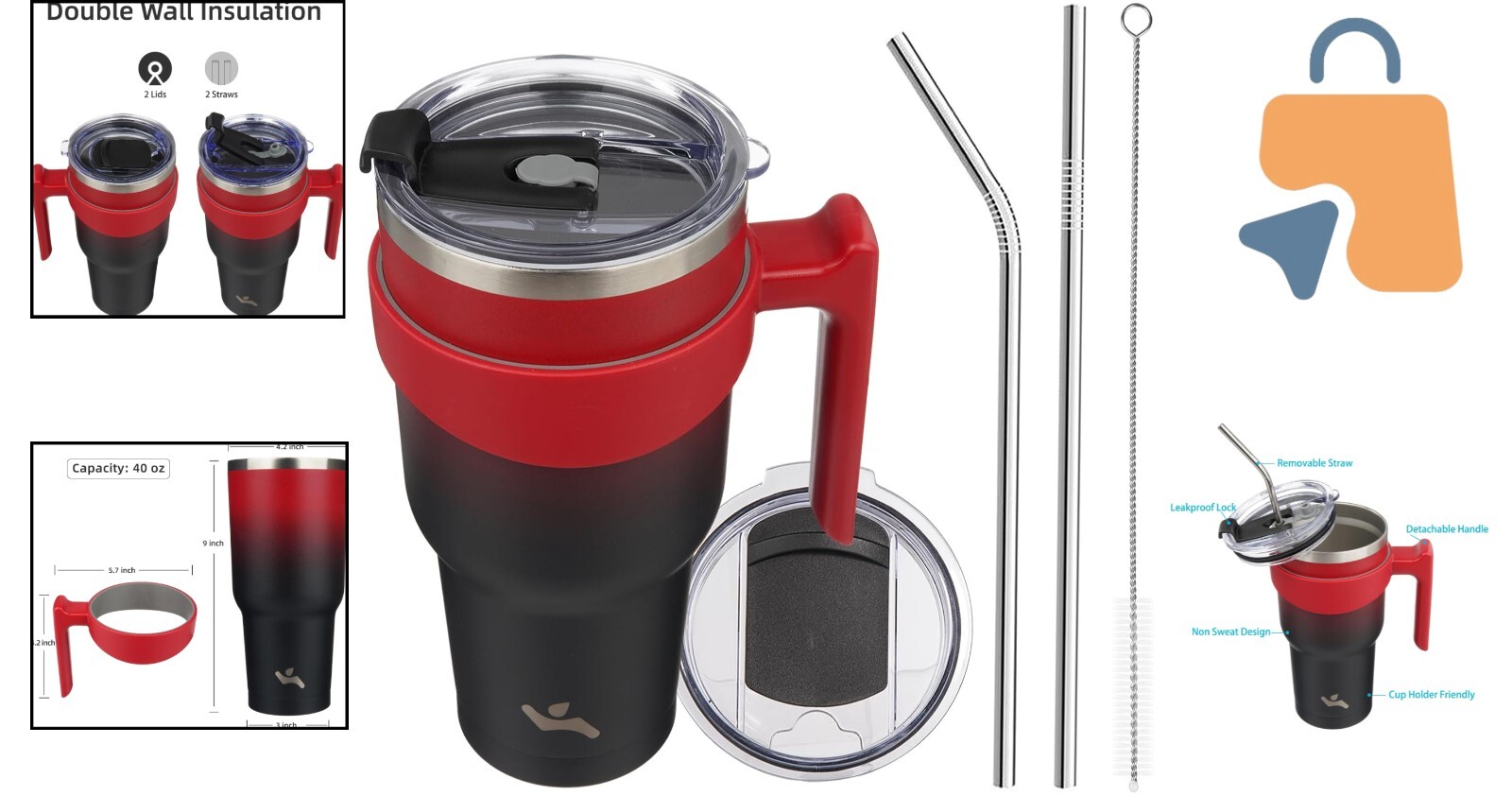 Two Reusable Stainless Steel Straws: Comes with a curved straw for easy sipping and a wider straight straw for shakes or smoothies, along with a straw brush for effortless cleaning.