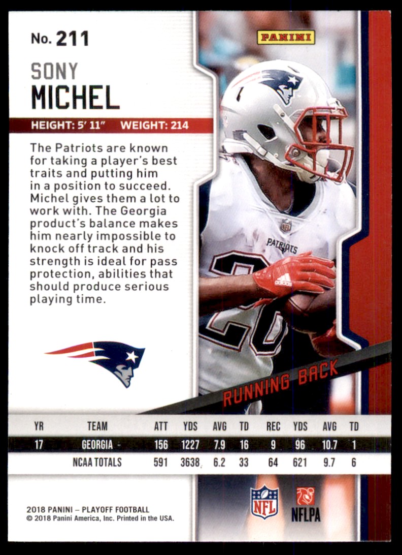 | 2018 Panini Playoff Sony Michel RC New England Patriots #211 | ||||||||||||||||||