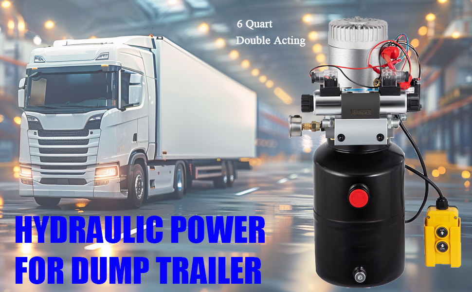 This hydraulic pump is a double-acting power unit for both lifting and lowering. It has a 6L sturdy plastic reservoir and is designed with a 12V DC motor that can provide strong power for hydraulic systems like dump trailers, forklifts, lifting platforms, etc.