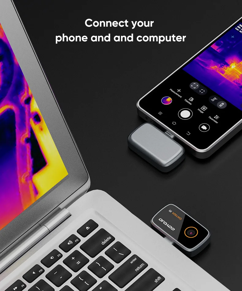 Easily transform your Android device into a powerful infrared imaging tool. Simply plug in via USB-C, and start detecting heat patterns instantly-no batteries or additional devices required. (Not compatible with iPhone.)