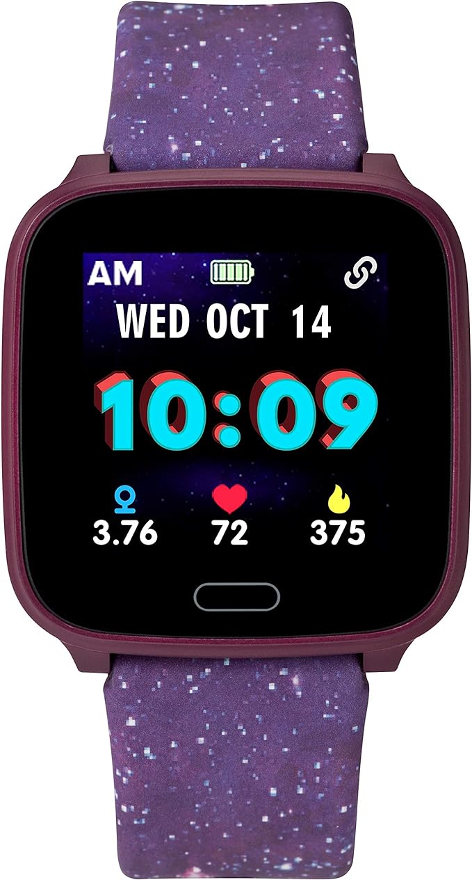 iConnect by Timex Kids Active Smartwatch with Heart Rate Notifications & Activity Tracking 37mm - Purple with Purple Galaxy Resin Strap.