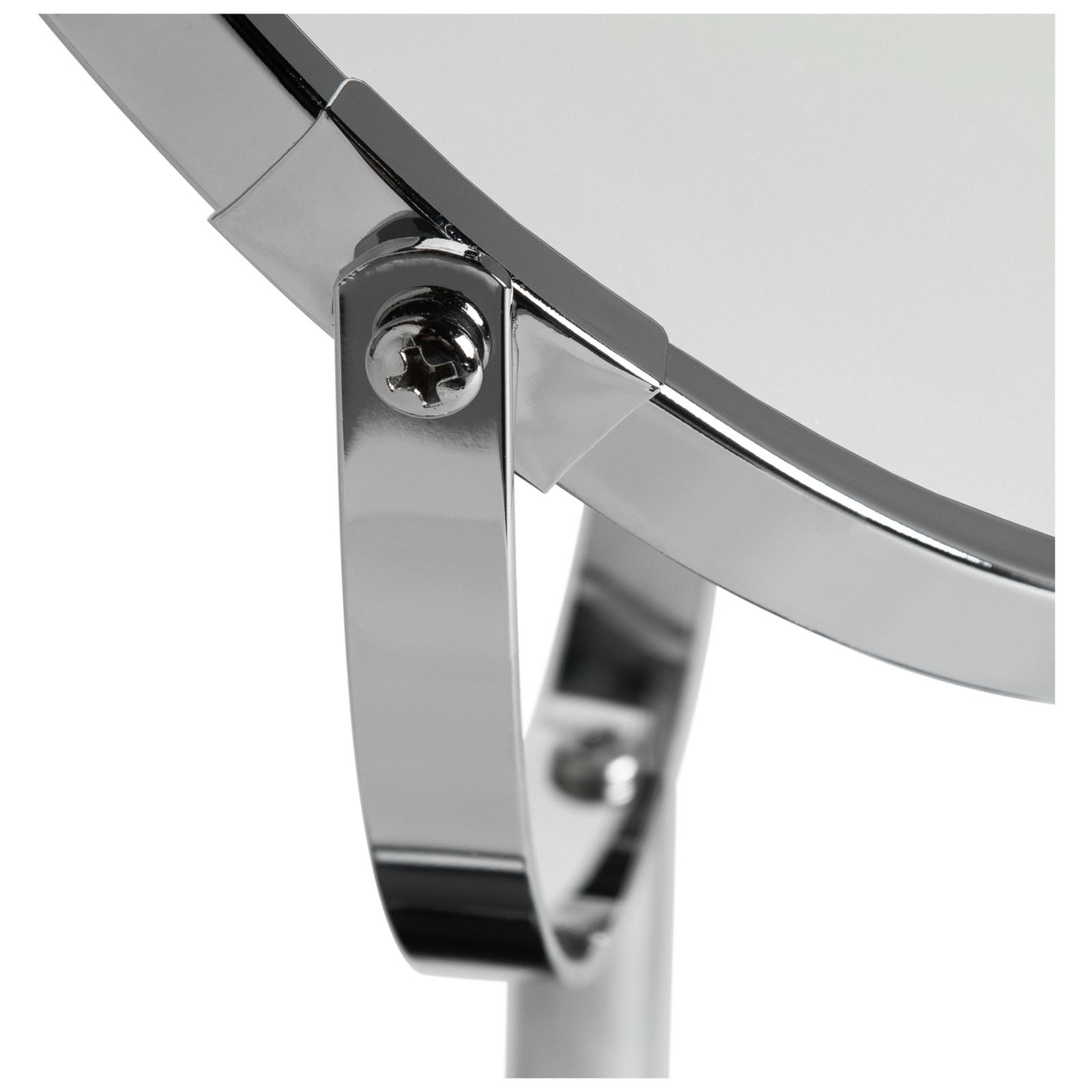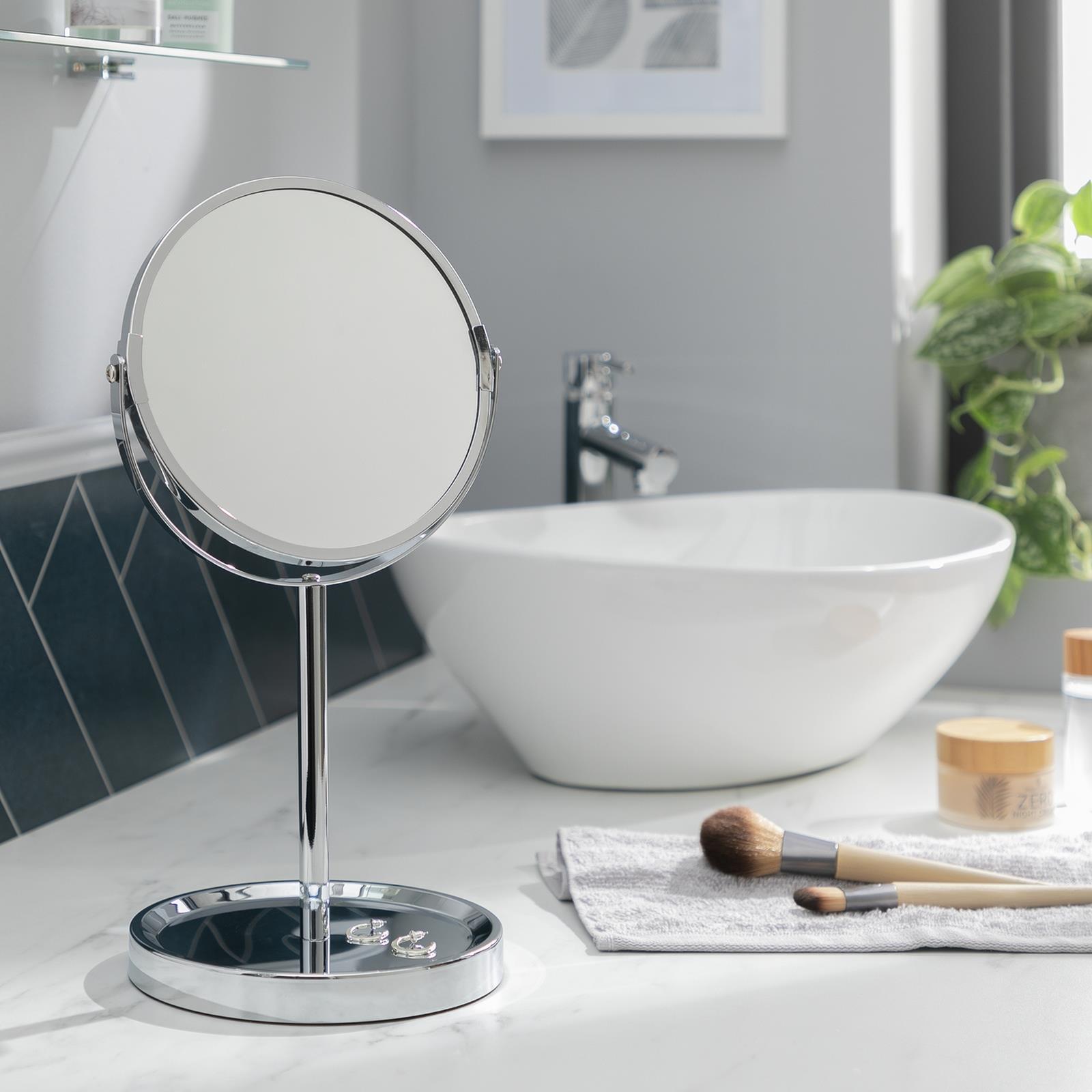 Enhance your daily routine with this Habitat chrome pedestal mirror, combining modern design with practical functionality. Featuring dual magnification and a built-in tray, it’s perfect for grooming, makeup, and organisation.