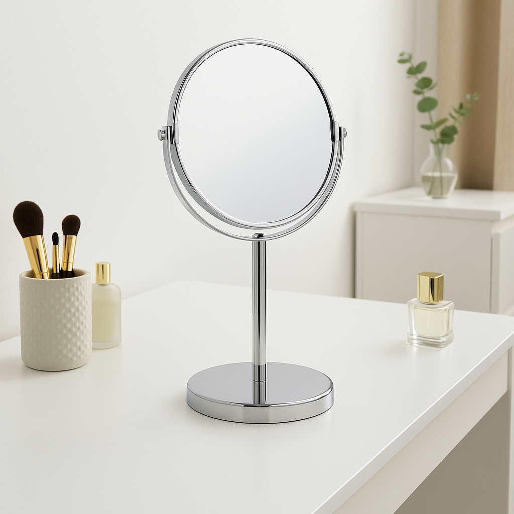 Stable freestanding base ensures secure use. Smooth swivel mechanism allows easy positioning for detailed grooming tasks.