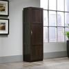 Is the clutter and chaos in your home beginning to get a little out of hand? We can fix that! Find the solution to all your storage woes with this storage pantry from Sauder. Behind its large, raised panel door is a hidden storage area that contains three adjustable shelves. These three shelves have the ability to move to different heights to create flexible storage options for items of all shapes and sizes. Store and organize a variety to different items like groceries, cleaning supplies, spare blankets and board games too. You can find a place for all your things! Its sleek design and charming good looks make this wood storage cabinet a great addition to any room in your home the kitchen, down the hallway, in your office, or in the entryway. Itll look good no matter where it stands. Finished in Cinnamon Cherry and detailed with attractive hardware, this versatile storage cabinet with door will have you feeling organized in no time.