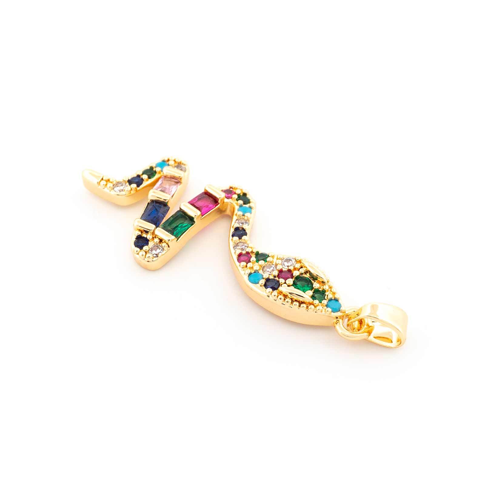 Schlangen-Anhänger mit buntem Zirkoniabesatz – 18k Goldbeschichtung