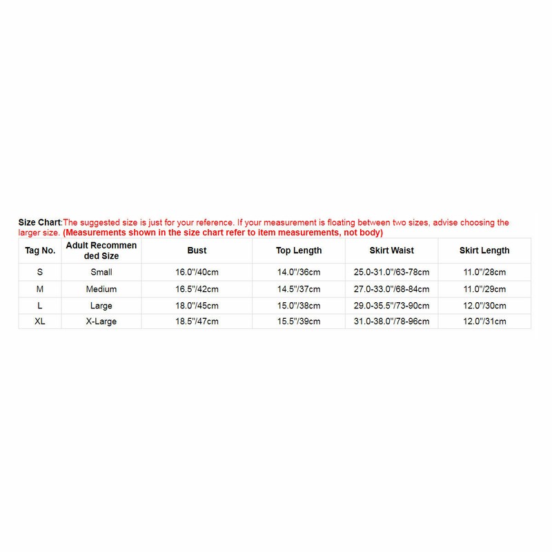 | Tag No. | Recommended Size | Tops Length | Front Chest | Skirt Length | Skirt Waist |