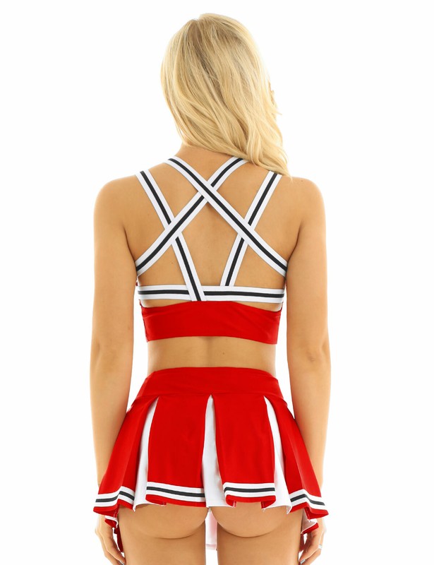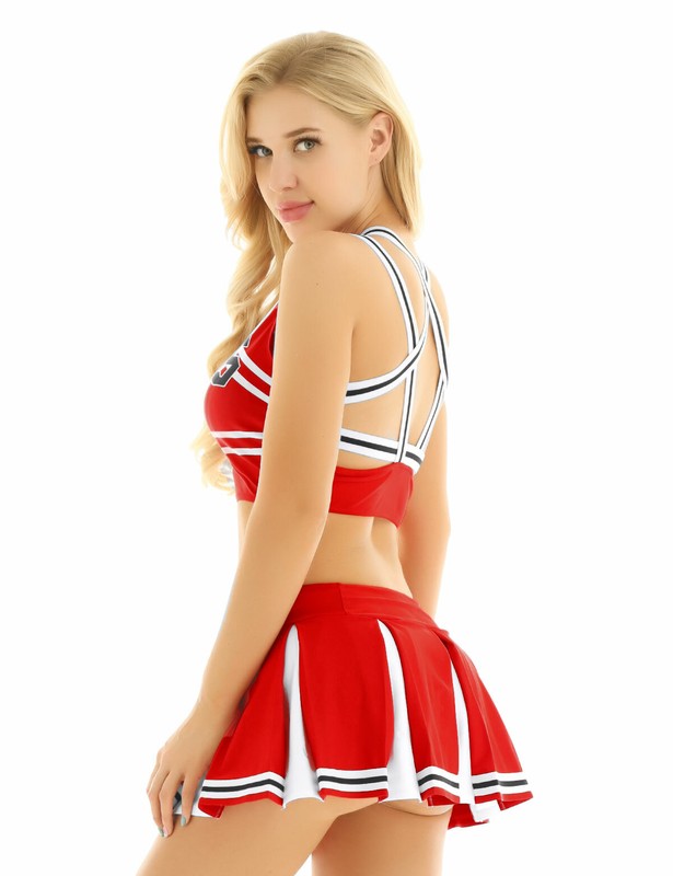 Women ladies cheerleading cosplay costume uniform set, pull on closure.