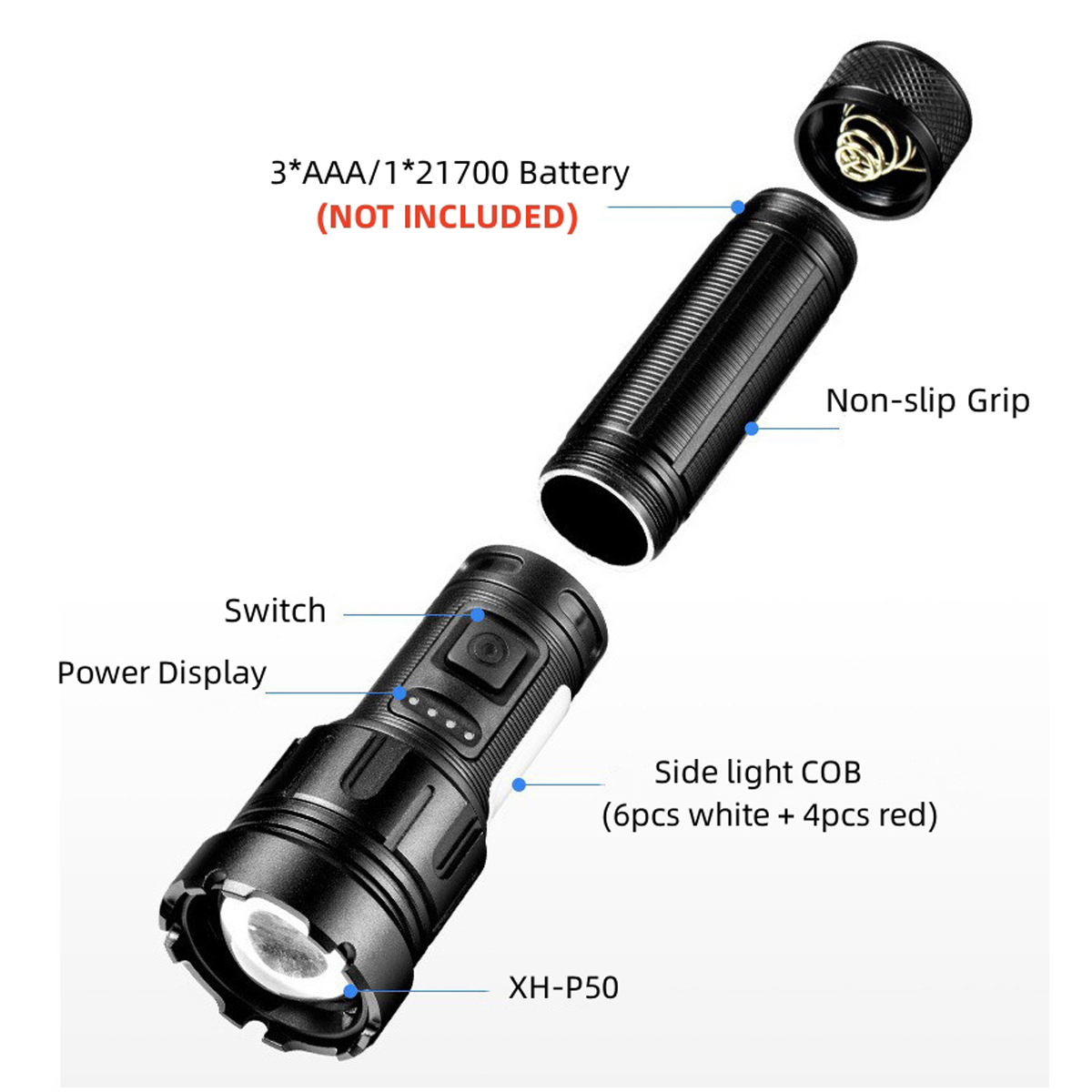 Lampe de poche DEL XH-P50 lumière tactique super lumineuse torche USB rechargeable