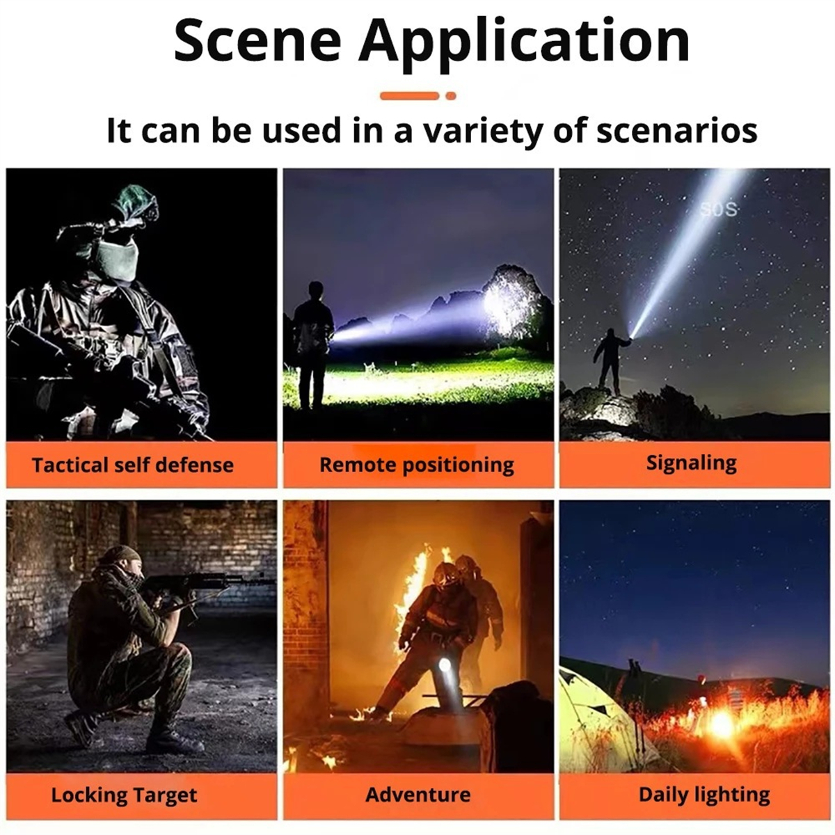 4. IPX5 étanche : niveau d'étanchéité jusqu'à IPX5 plus le corps de la lampe de poche en alliage d'aluminium de qualité anti-éclaboussures garantissent qu'il peut être utilisé sous la pluie, adapté à l'extérieur.