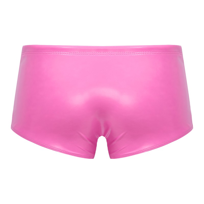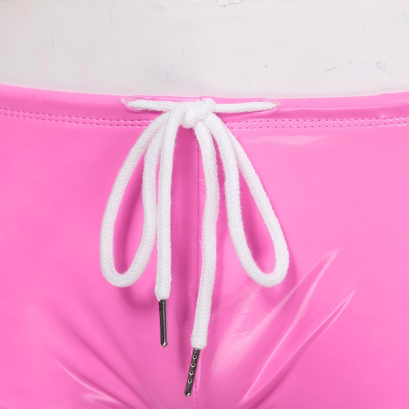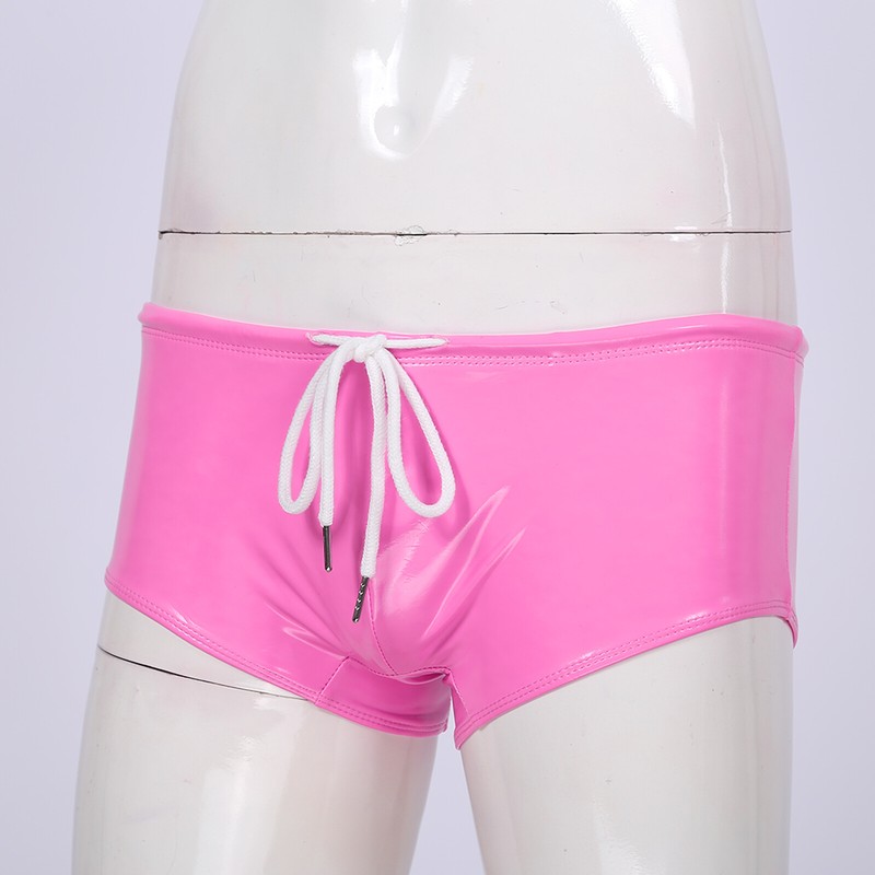 Men Wet Look Patent Leather Swimming Trunks Low Rise Drawstring Boxer Shorts Swimwear .