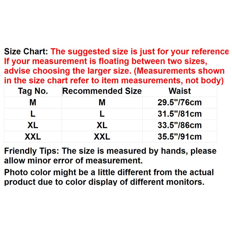 Friendly Tips: The size is measured by hands, please allow minor error of measurement.