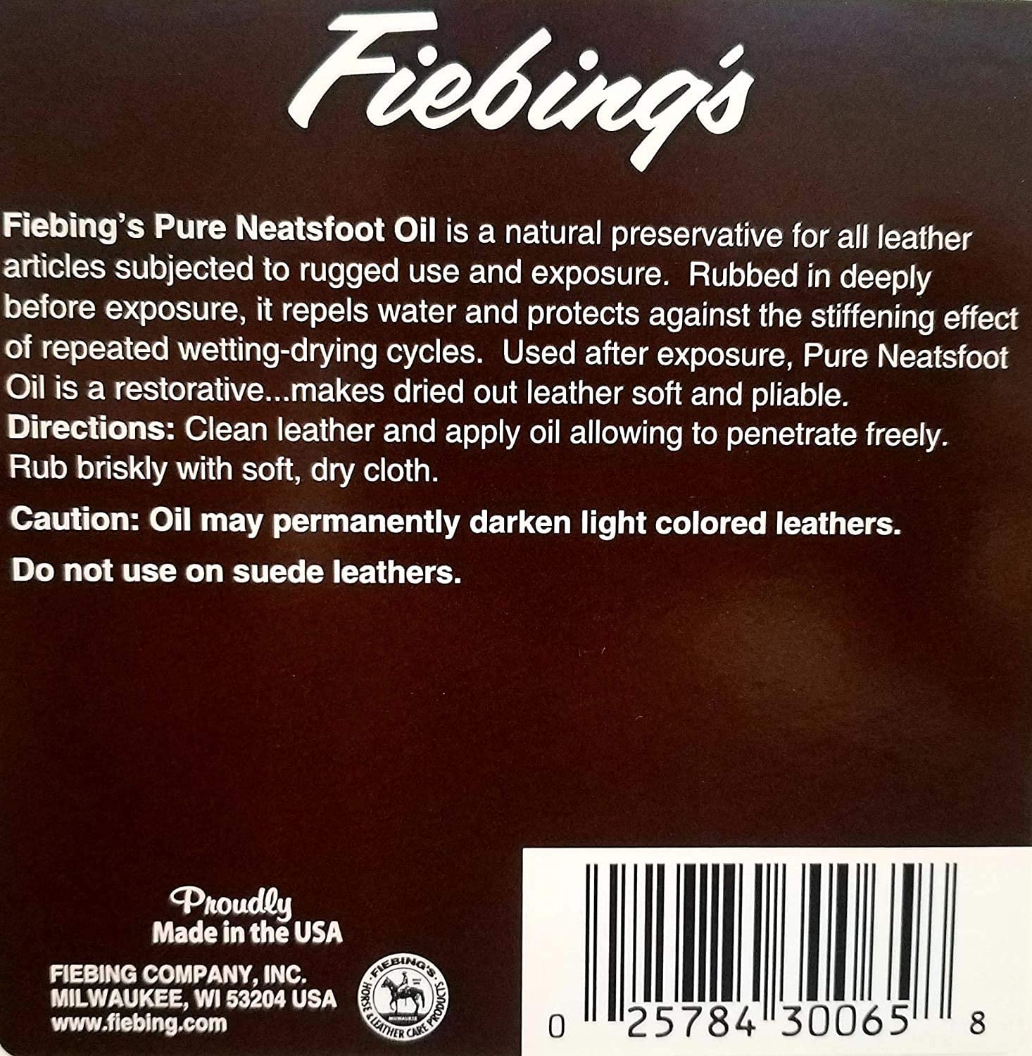 Fiebing's 100% Pure Neat's-foot Oil, 16 oz. - Natural Leather Preservative - A 100% natural preservative for leather articles subjected to rugged use and outdoor exposure. Since the primary function of a neat's-foot oil is to replace the evaporated oils in leather, replacing the oils with other natural oils is best. Used by saddle makers for over a century.