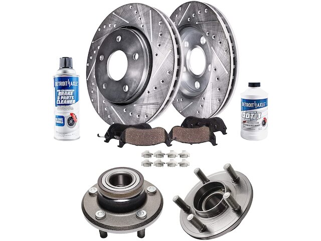 Features:- Kit Includes: (2) Front Wheel Hub Bearing + (2) Front Brake Rotor + (2) Front Ceramic Brake Pad + (1) Brake Fluid Bottle + (1) Brake Cleaner Bottle