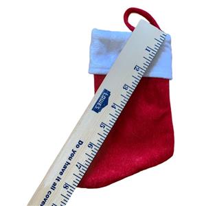 8" Measured from Upper left corner of stocking cuff at angle to the stocking toe not including hanger