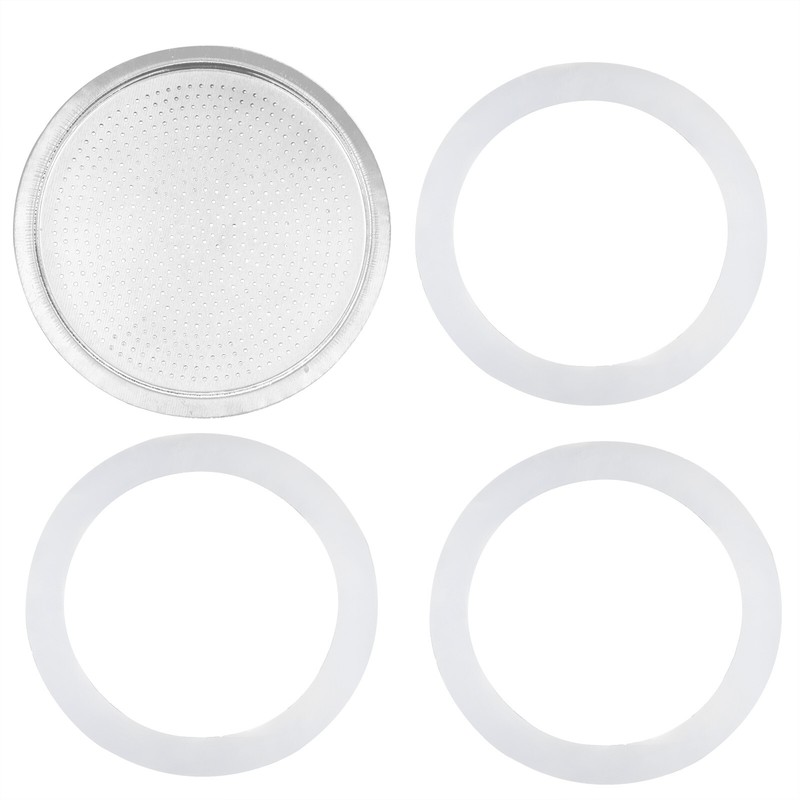 Full set with 3 pieces replacement gaskets and 1 piece aluminum filter screen. Special for aluminum coffee pot.
