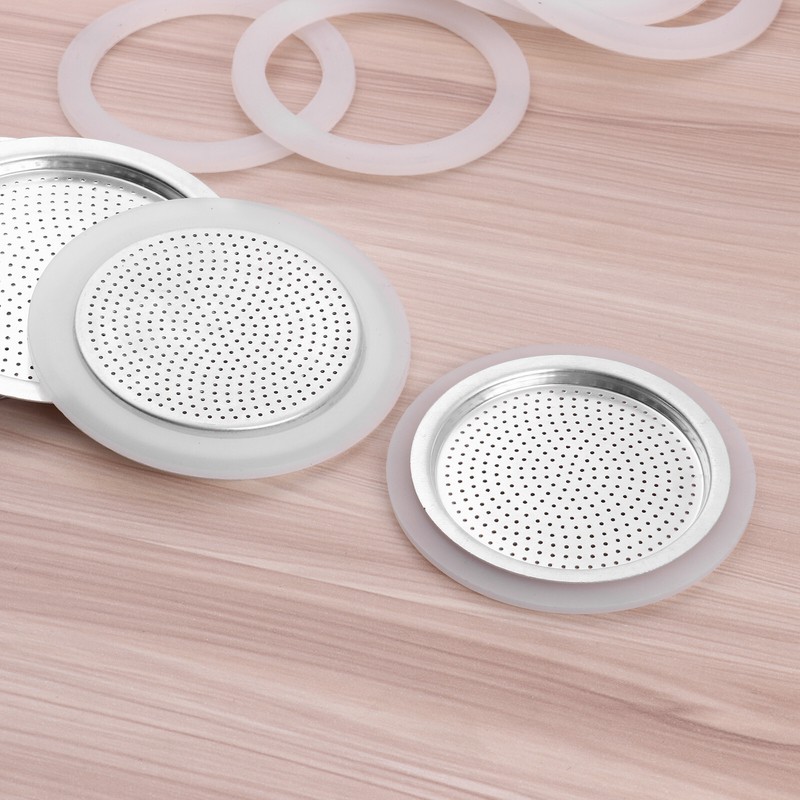 3/6/9/12 Cup Replacement Silica Gel Gaskets and Aluminum Filter for Moka Pot Coffee Bottle.