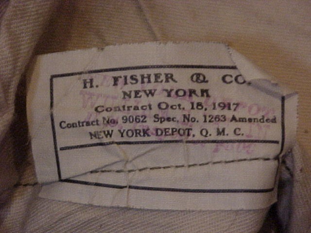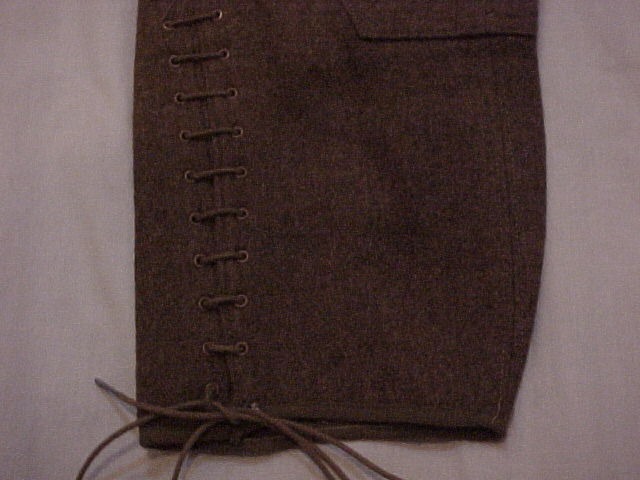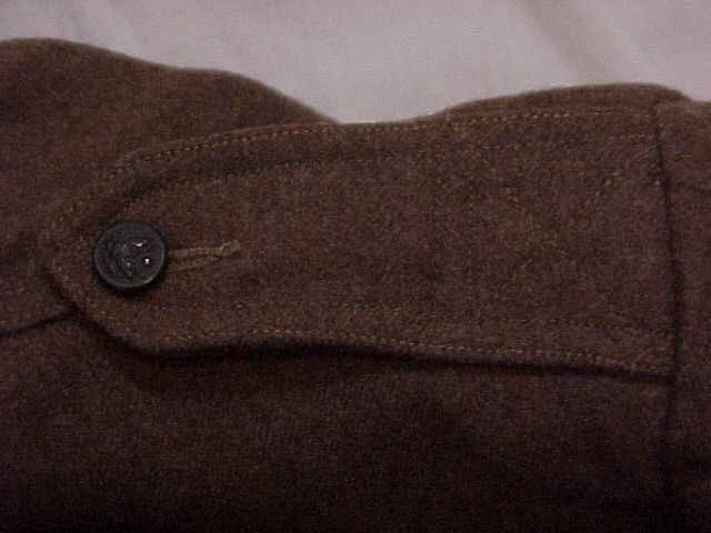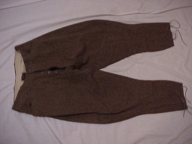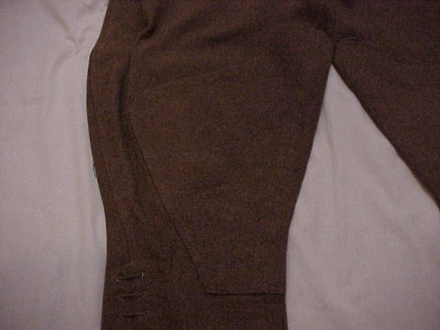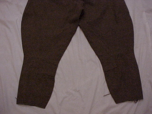 The blouse is matched with a VERY GOOD+ pair of breeches in wool fabric. The breeches still have a legible QM sewn to the underside of the right hip pocket, showing an October 1917 date of manufacture (see image above). The actual measurements of the breeches are as follows" Waist 34"; Inseam 25" (remember these are breeches which only go to mid-calf due to the wear of either puttees or leggings); Hips 26"; and Overall length 38". Again, all buttons are present, including the zinc metal buttons at the fly. The only blemish is light soiling of the lining of the pants. Please scroll downward to see the remaining images!