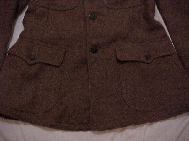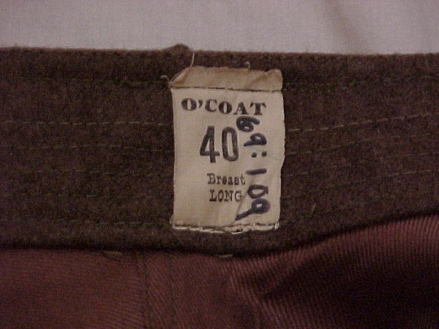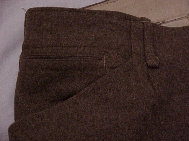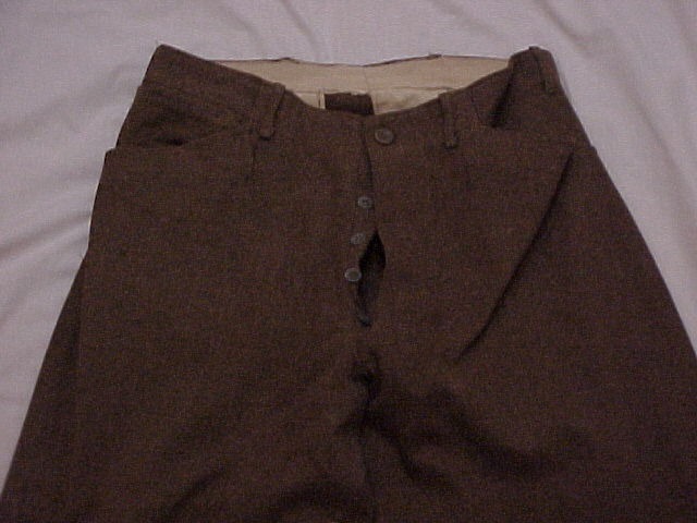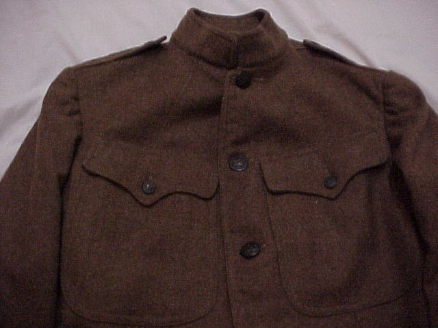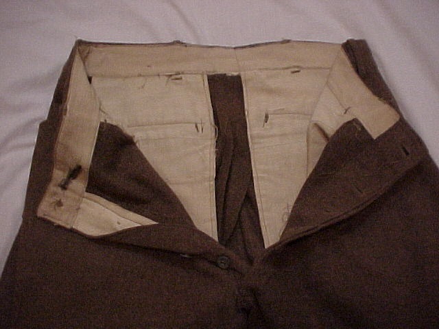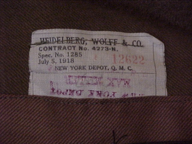 This is an ORIGINAL, RARE & MINT condition M1912 wool uniform, as issued to Doughboys early in WWI. The blouse or tunic is a true size 40 LONG chest with the paper tag still sewn inside the neck of the blouse (see image). Inside the lower right lining is a QM tag with a July 1918 date (see close-up image). The blouse is in pristine condition despite its 106-year age, with all buttons "present and accounted for" in the original blackened color. The brown wool color is VERY strong, as shown in the non-flash images. The actual measurements of the blouse are as follows: Chest 20"; Sleeve length 25"; Shoulders 17"; Waist: 18"; and overall length 34".