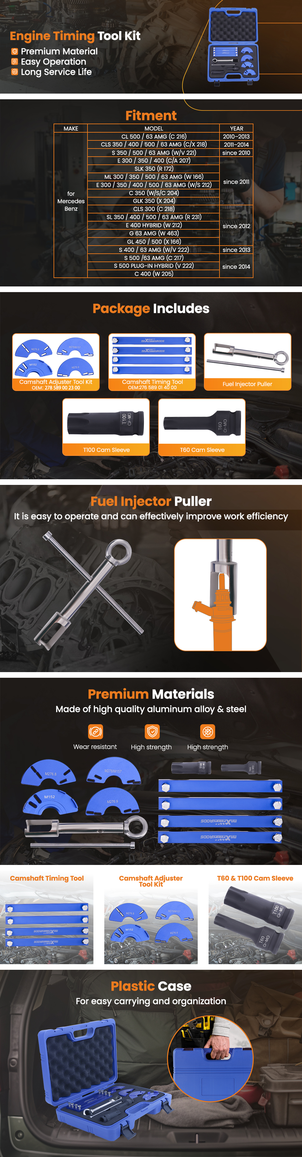 For Mercedes Benz M133, M152, M157, M270, M274, M276, M278 engines.