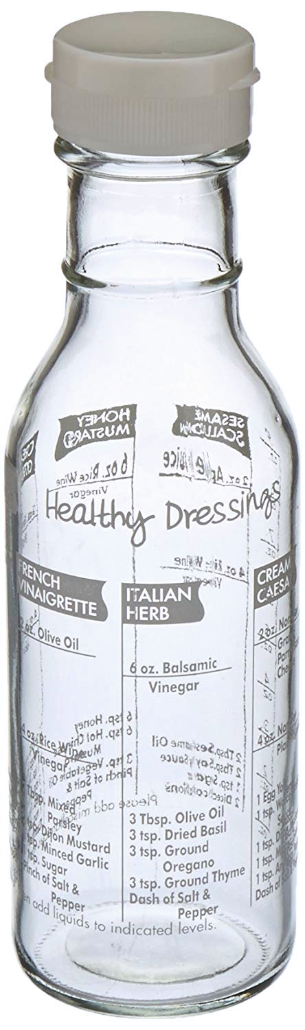 Handy glass shaker features 6 low fat recipes, measuring guidelines and instructions included. Measures 8 1/4" /21cm. Capacity 1 1/3 Cup/11 ounce.