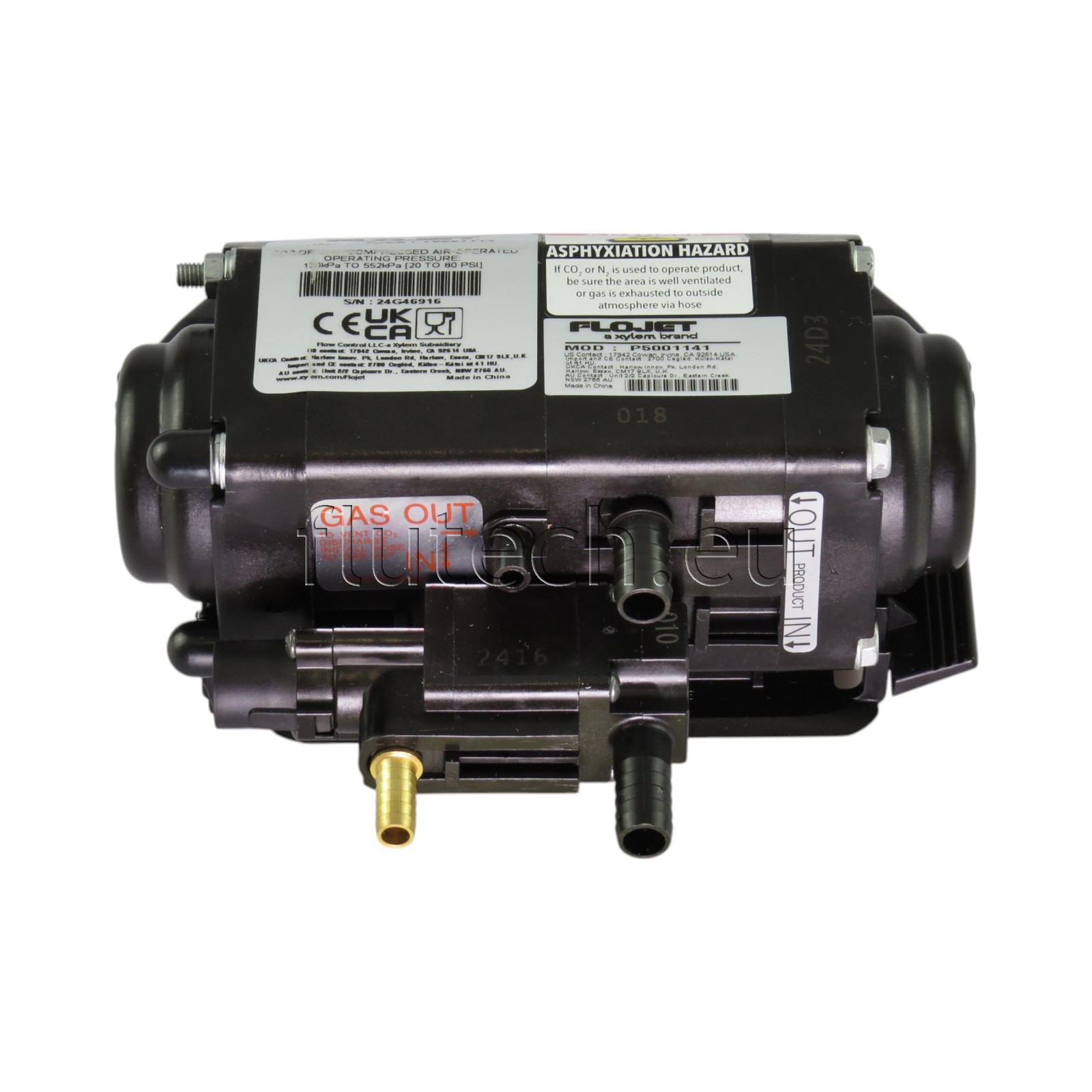 - Connections (or scope of delivery): Pumped medium IN 3/8 "BP, pumped medium OUT 3/8 "BP, gas IN 1/4" hose
