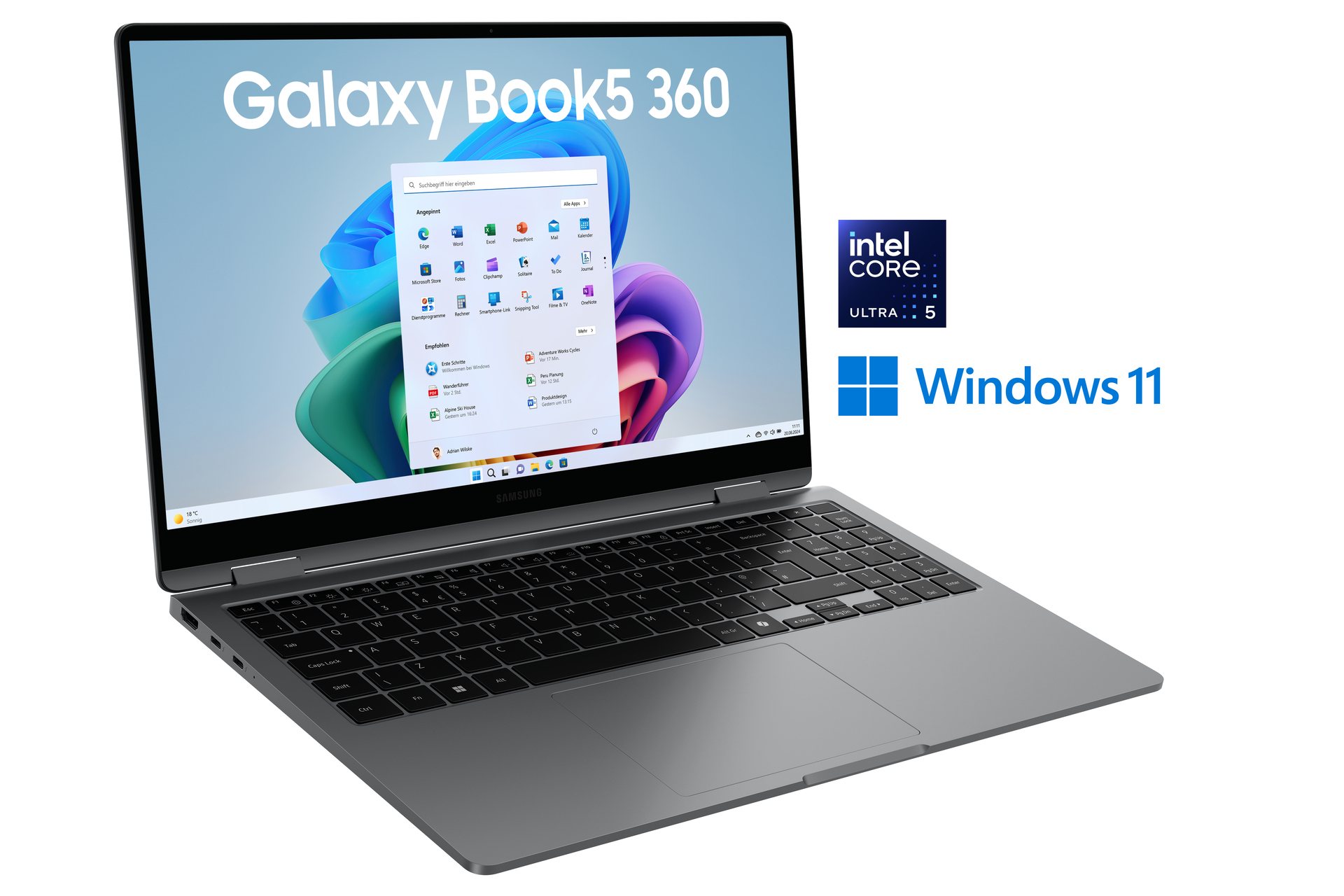 Nutze die Power von AI jetzt für deine täglichen Aufgaben: Das Galaxy Book5 360 verbindet vielfältige AI-Features mit jeder Menge Leistung und Flexibilität. Dank des umklappbaren Displays kannst du das Gerät wie ein Notebook vor dir aufstellen oder wie ein Tablet einsetzen. Das schlanke Aluminium-Gehäuse liegt dabei angenehm leicht in deiner Hand. Ob Recherche, Live-Übersetzung, Gliedern oder Zusammenfassen von Texten – deine Routineaufgaben erledigst du am besten ganz bequem mit AI-Unterstützung. Das Suchen von Informationen wird mit "AI Select" dabei so einfach wie auf dem Galaxy Smartphone. Kreise das Objekt einfach ein und lass dir auf dem großen AMOLED-Touchscreen relevante Ergebnisse anzeigen. Auch bei Sonnenschein hast du eine brillante Sicht auf deine Inhalte. Tauche tief in deine Projekte ein – und setze deine kreativen Ideen einfach und produktiv um. Der fortschrittliche Intel Core Ultra Prozessor wurde speziell für AI-Anwendungen optimiert und gibt dir entsprechenden Rückenwind. Damit du nach der Arbeit noch eine Runde entspannt streamen oder gamen kannst, hält der starke Akku stundenlang für dich durch. Auch deine kompatiblen Galaxy Geräte sind nur einen Klick entfernt. Verbinde sie mit deinem Galaxy Book5 360, um Daten oder Funktionen nahtlos nutzen zu können und nutze mit "Storage Share" den Speicher geräteübergreifend.