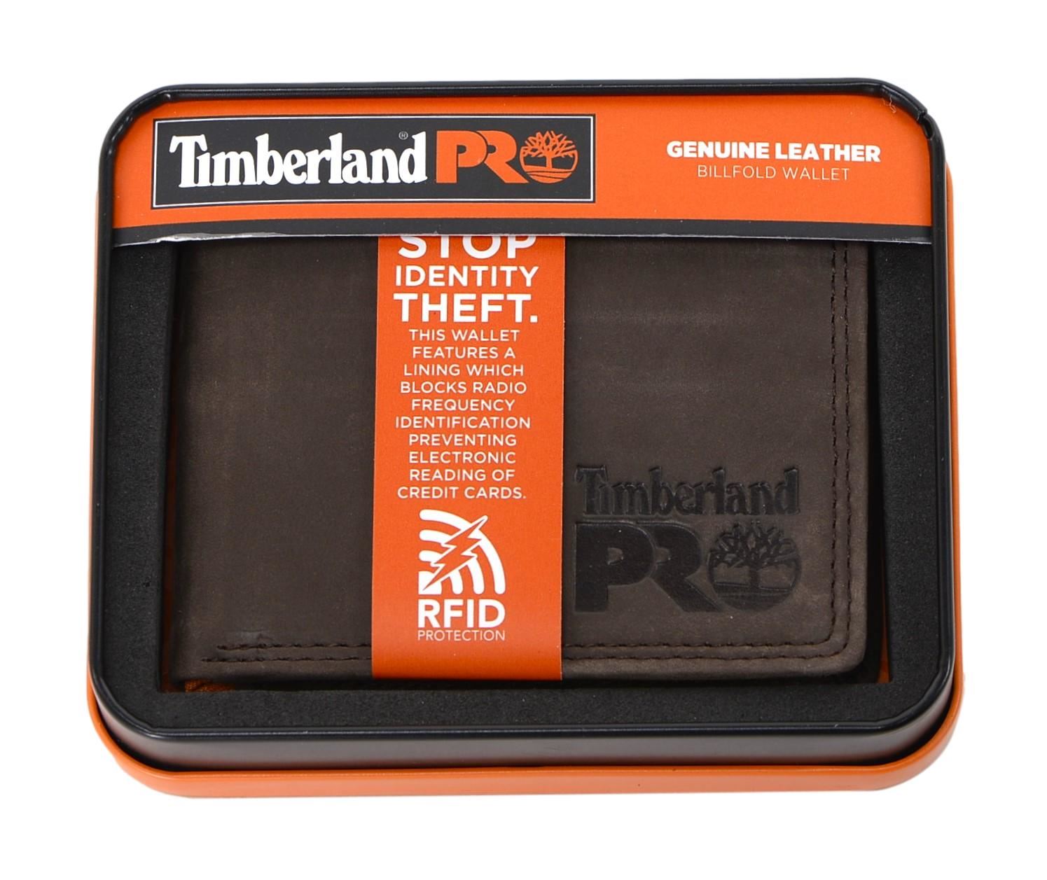 The Timberland Pro RFID Block Bifold Wallet combines style and functionality. It is made from 100% genuine leather and features six standard-sized credit card pockets, two slip pockets, and a clear ID window. A large horizontal cash pocket provides ample space for your bills. Equipped with RFID-blocking protection, this wallet ensures your personal information stays safe. It comes beautifully packaged in a matching tin gift box, making it a perfect gift choice.