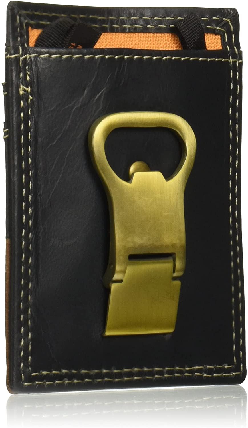Timberland PRO Genuine Leather Slim Compact Wallet combines functionality and style in a sleek design. This wallet features four credit card pockets and an innovative exterior money clip that doubles as a bottle opener. Crafted from high-quality genuine leather, it offers durability and a sophisticated look, perfect for those who need a compact solution for carrying essentials.