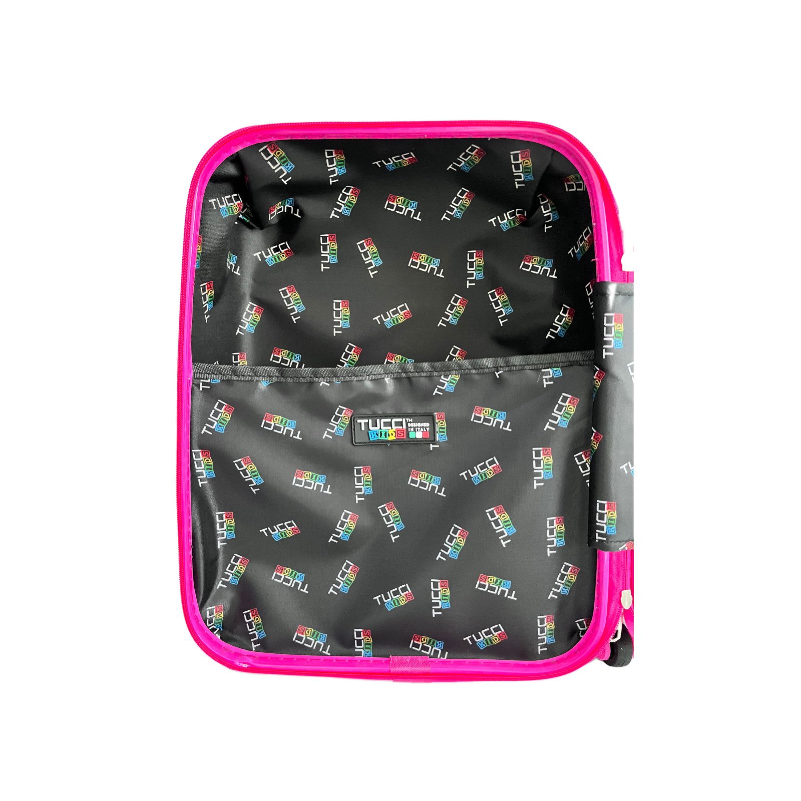 This Kids luggage is the perfect travel companion for your little ones. The collection was created with the unique characteristics of children in mind, incorporating several design features that benefit children. the piece has been printed with colorful and vibrant artwork adding loads of fun to traveling for the kids and the entire family. The luggage print is protected by a layer of clear coat which also gives it a beautiful glossy shine. The patent-pending design of this case also allows the wheels to protrude out keeping the case elevated and preventing the bottom of the luggage from touching the ground. children can wheel these fun cases around, as they also feature our inline skate wheels that make rolling even smoother. Both the luggage piece have a zipper closure system when opened revealing a beautifully lined interior.