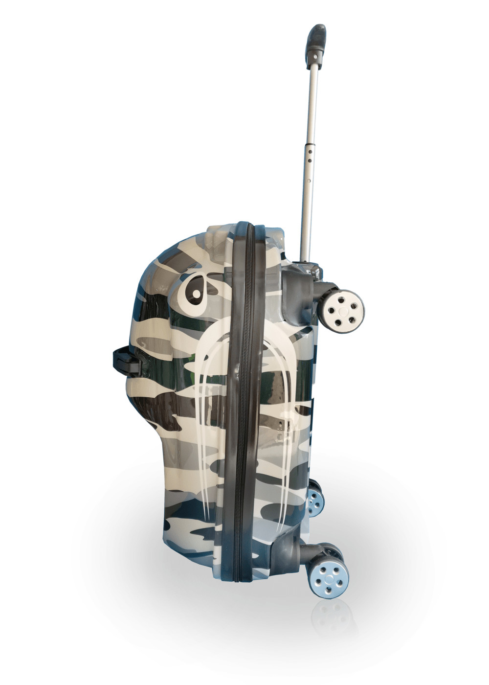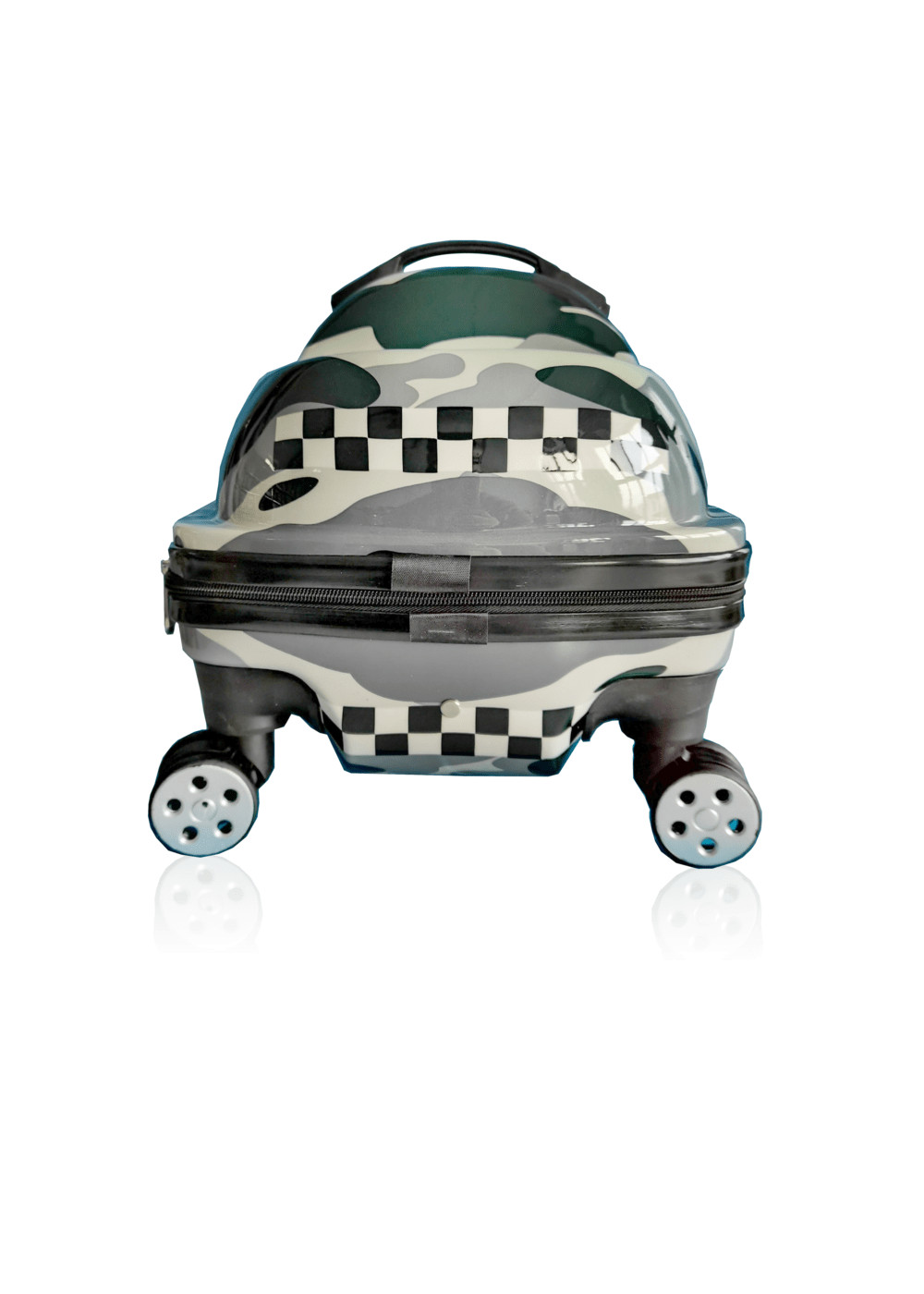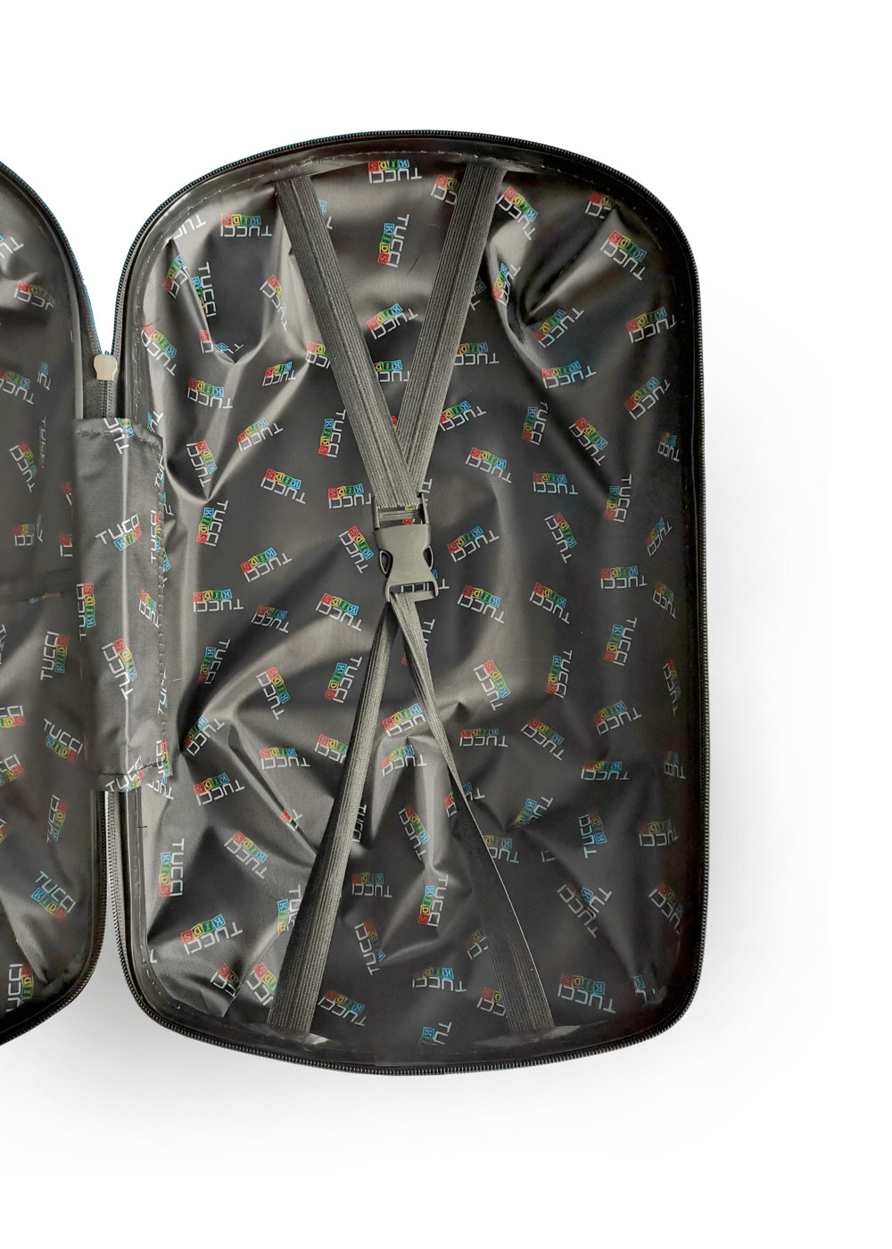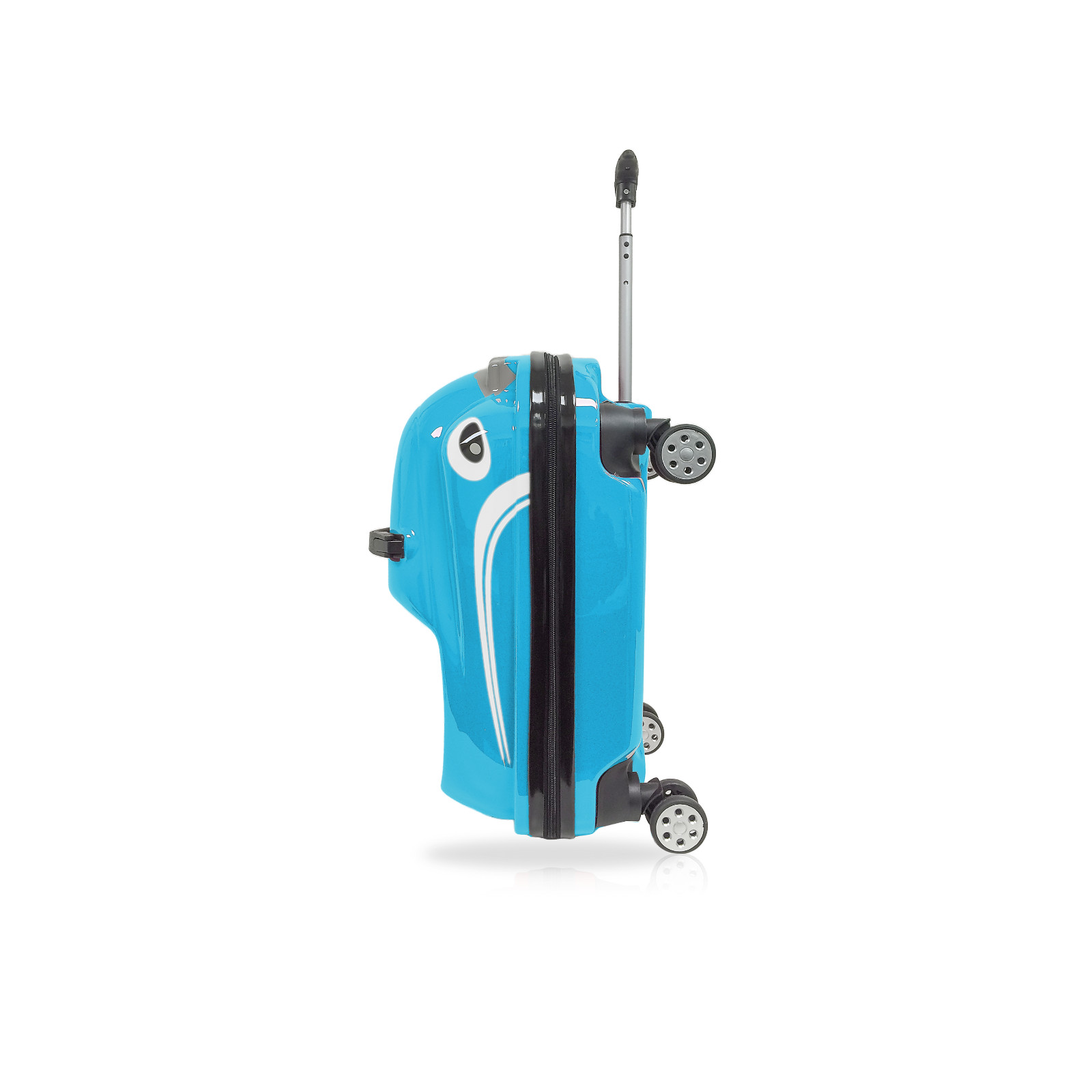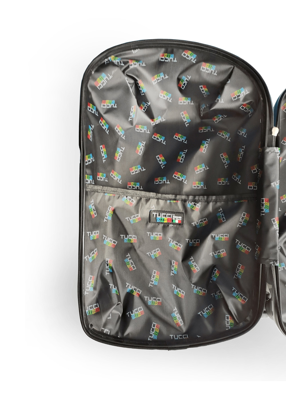 This Kids luggage is the perfect travel companion for your little ones. The collection was created with the unique characteristics of children in mind, incorporating several design features that benefit children. the piece has been printed with colorful and vibrant artwork adding loads of fun to traveling for the kids and the entire family. The luggage print is protected by a layer of clear coat which also gives it a beautiful glossy shine. The patent-pending design of this case also allows the wheels to protrude out keeping the case elevated and preventing the bottom of the luggage from touching the ground. children can wheel these fun cases around, as they also feature our inline skate wheels that make rolling even smoother. Both the luggage piece have a zipper closure system when opened revealing a beautifully lined interior.