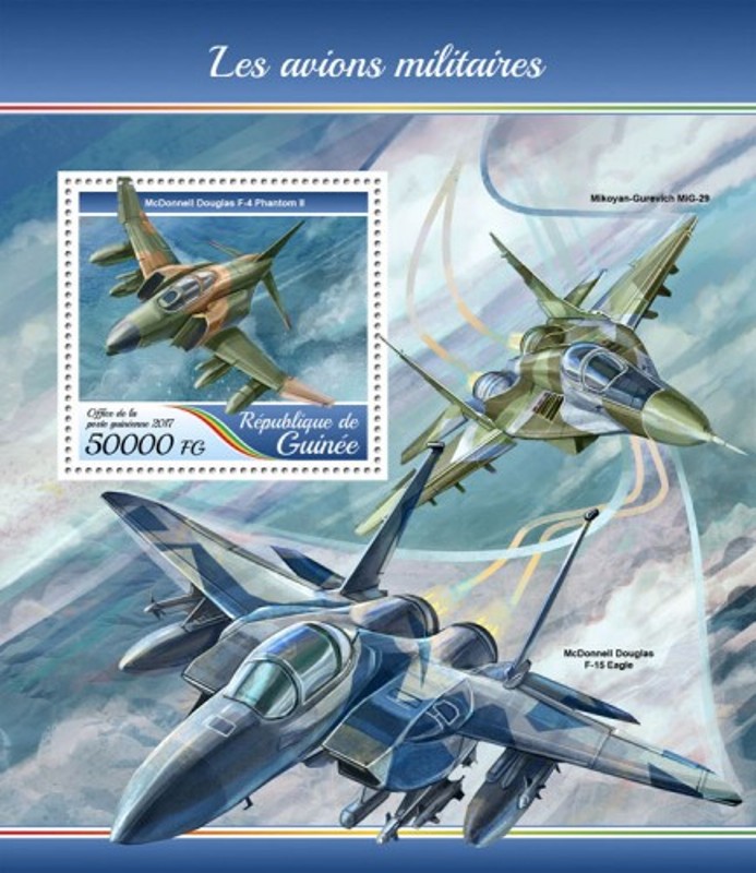 Country: Guinea, Year of Issue: 2017, Type: Stamp Souvenir Sheet, Topic: Military Planes, Military, War, Airplanes, McDonnell Douglas F-4 Phantom II