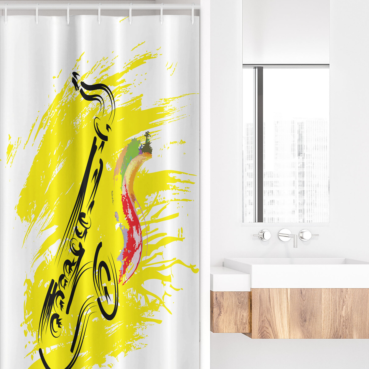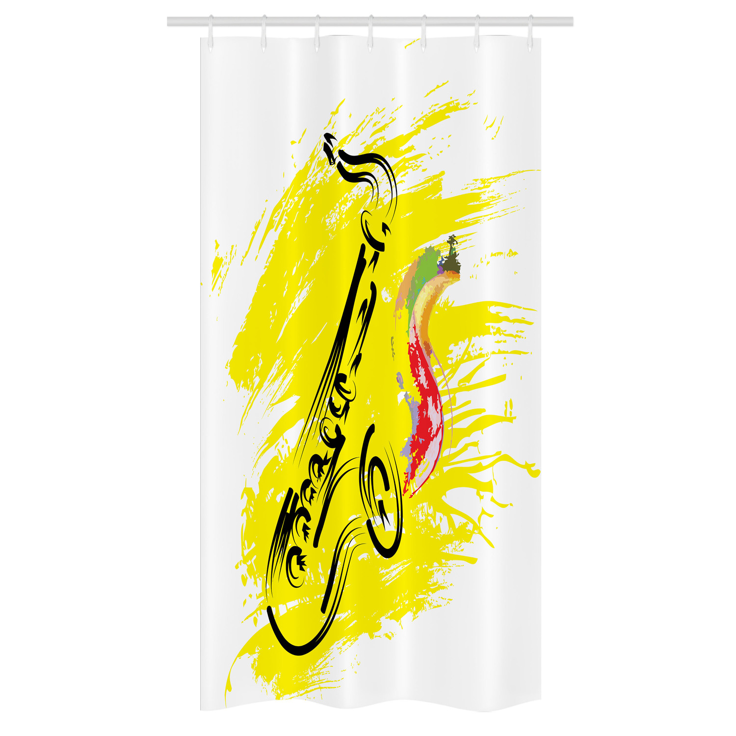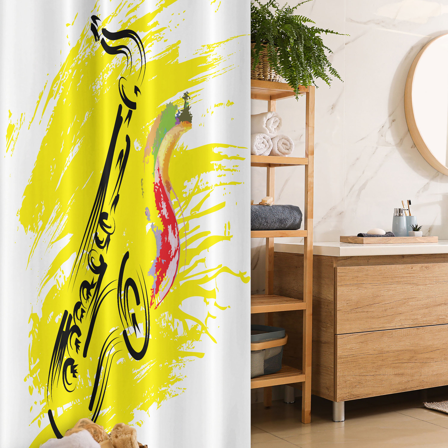 Yellow Black Stall Shower Curtain Jazz Saxophone