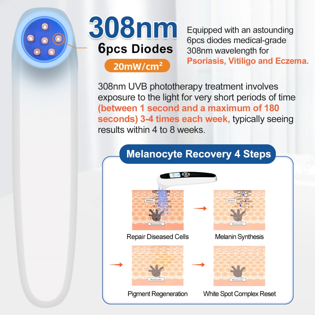 UVB increases tyrosinase and HMB-45 receptor expression on melanocytes,increasing melanin production, it's an excellent treatment option for vitiligo.