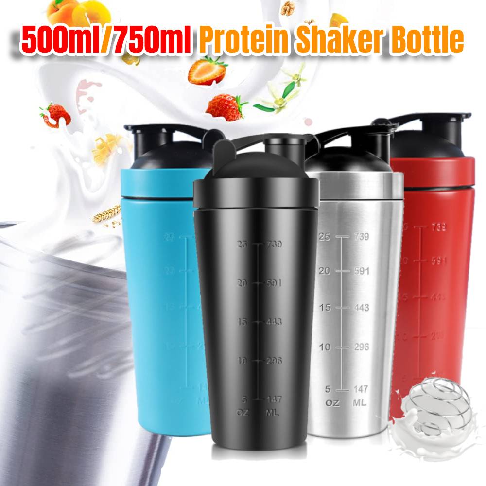 3.[Large Capacity] With 750ml large capacity, this protein shaker cup can hold more drink for you. It is single-layer with scales on the outside of the bottle, easy to see the amount of drink. It is a good helper when sports.