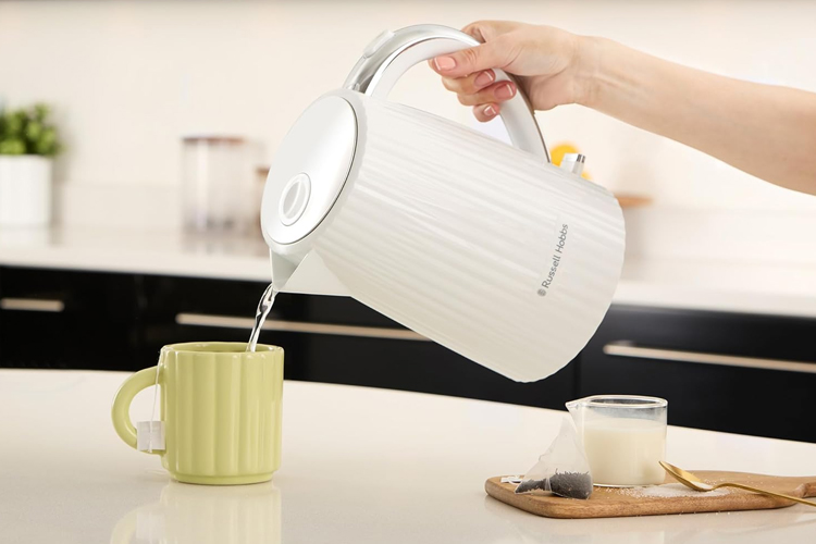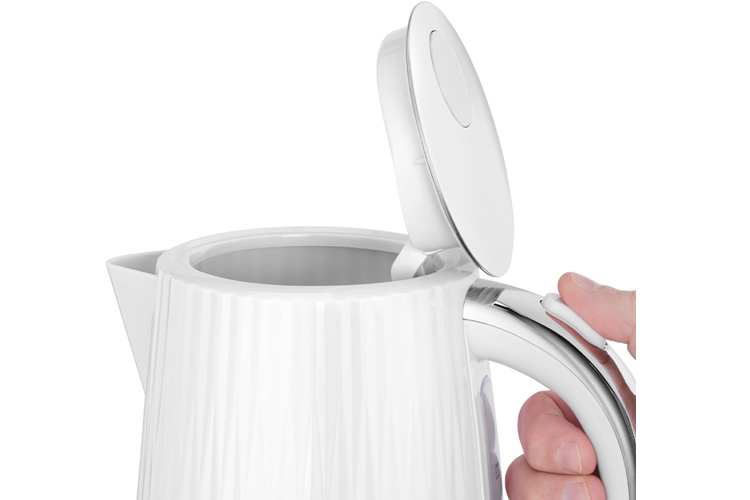 The Russell Hobbs Eden Kettle in White (Model: RHK2736WHT) combines contemporary design with practical functionality. Its textured finish and chrome accents make it a stylish addition to any kitchen, while features like the 1.7L capacity and 2400W power ensure efficient boiling for everyday use.