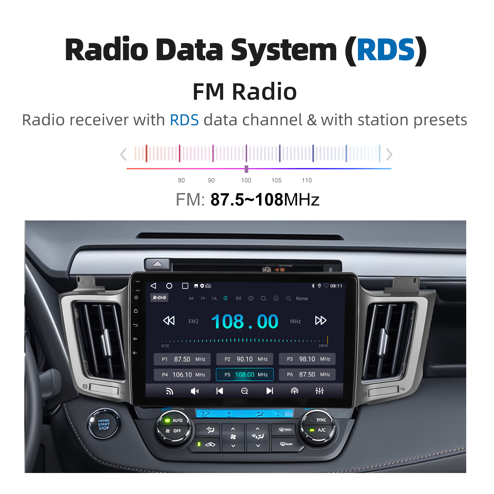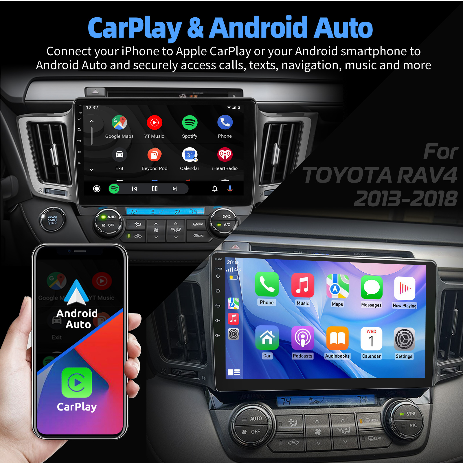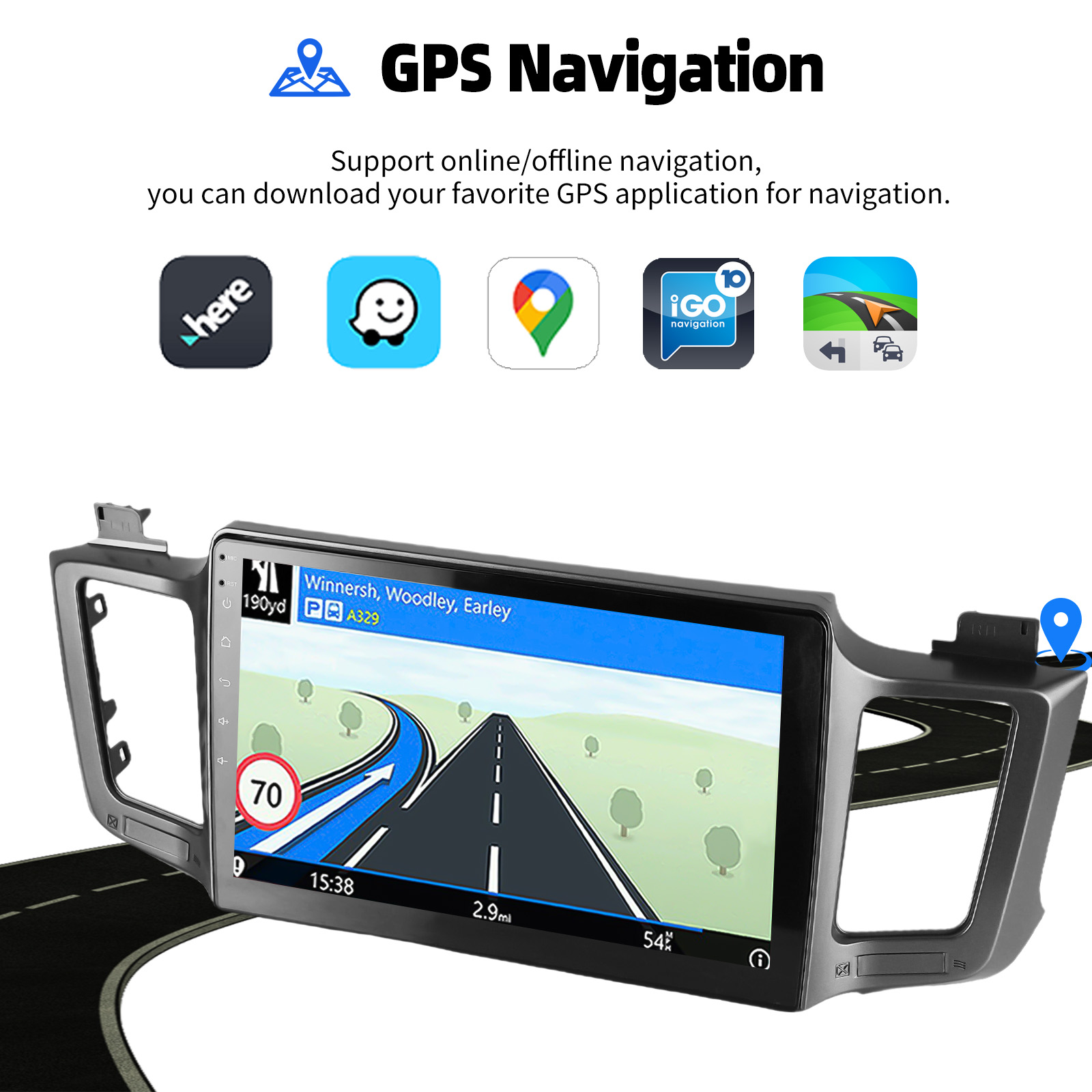 10.1 Inch Android 13 Car Radio For Toyota RAV4 2013-2018: The Android car radio with 10.1 "1280* 720 IPS capacitive touchscreen, 4GB RAM and 64GB ROMallows you to download your favorite apps and videos so that driving is no longer boring. No extra frame, no cable change, plug and play.