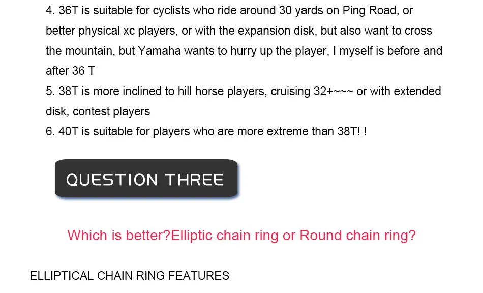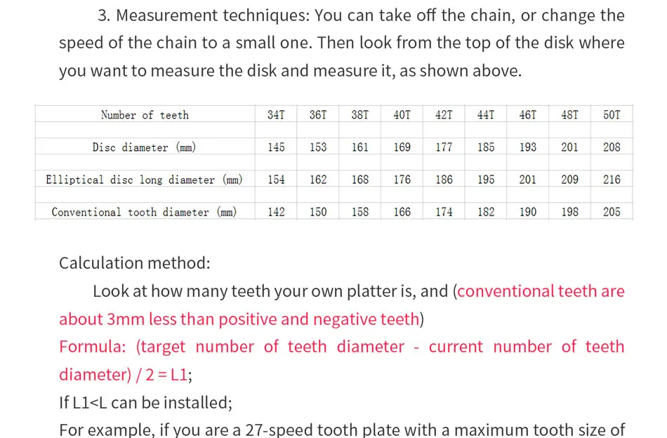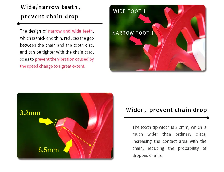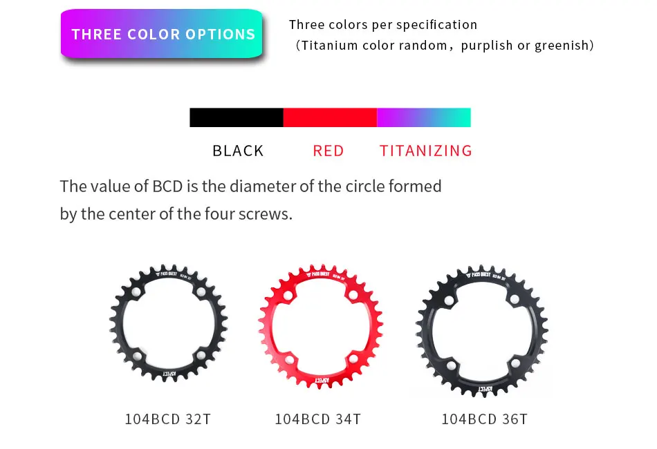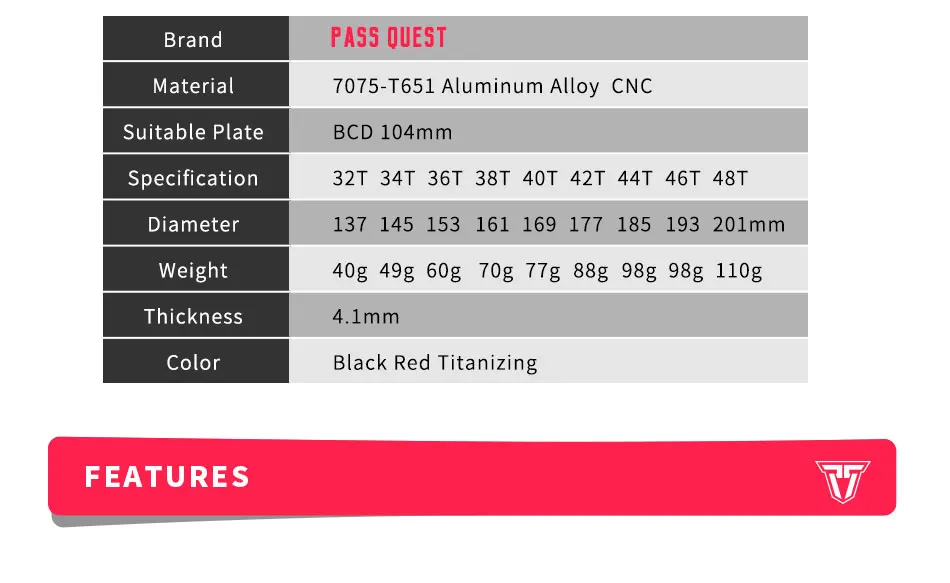 Weight: 32T(40g) 34T(49g) 36T(60g) 38T(70g) 40T(77g) 42T(88g) 44T(98g) 46T(98g) 48T(110g)