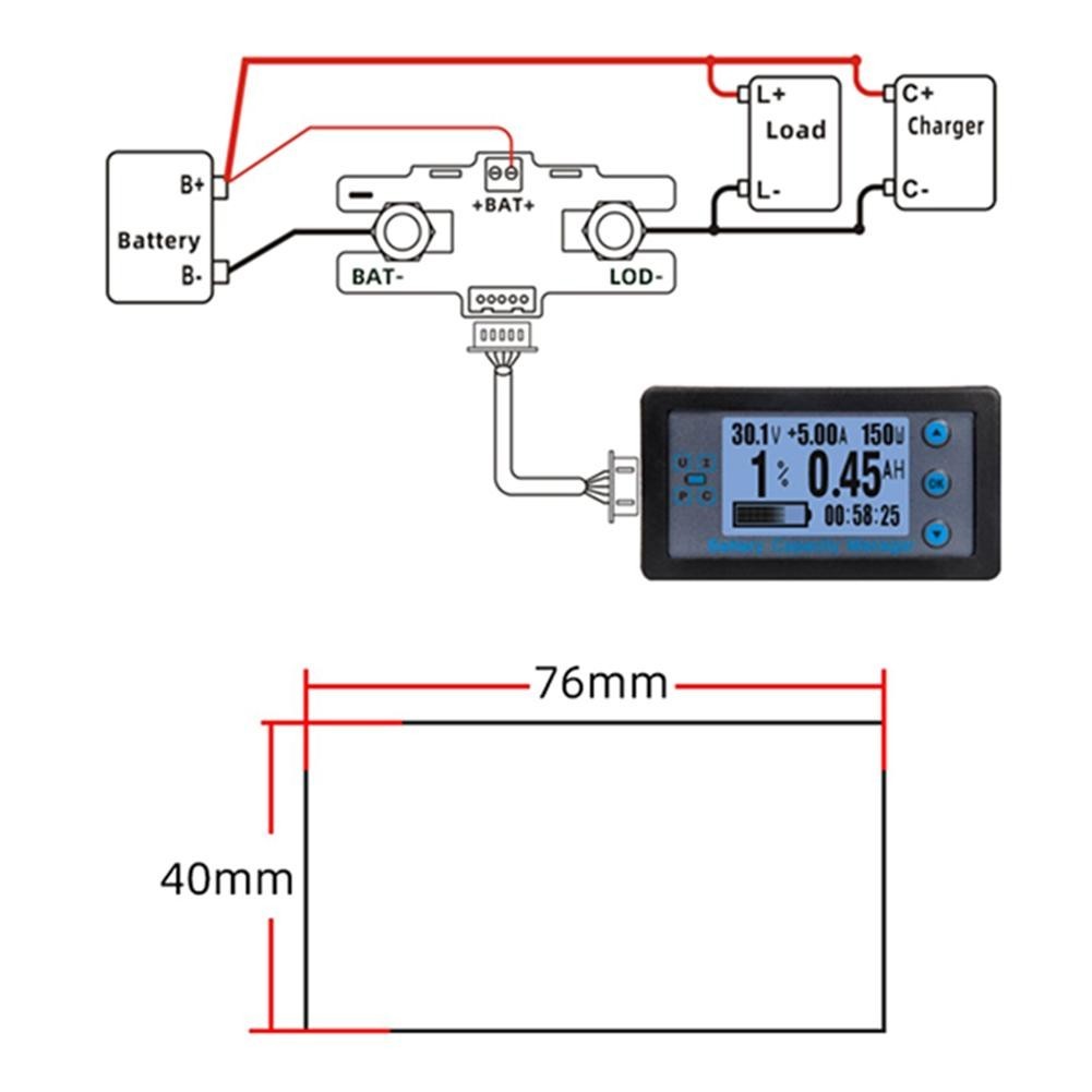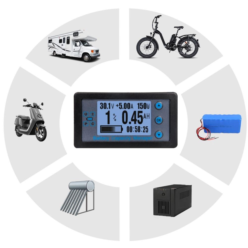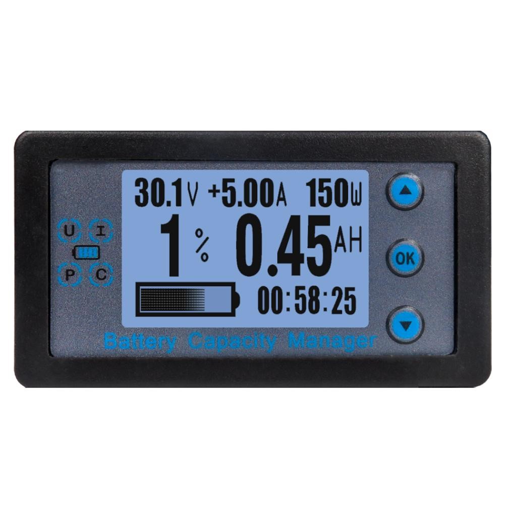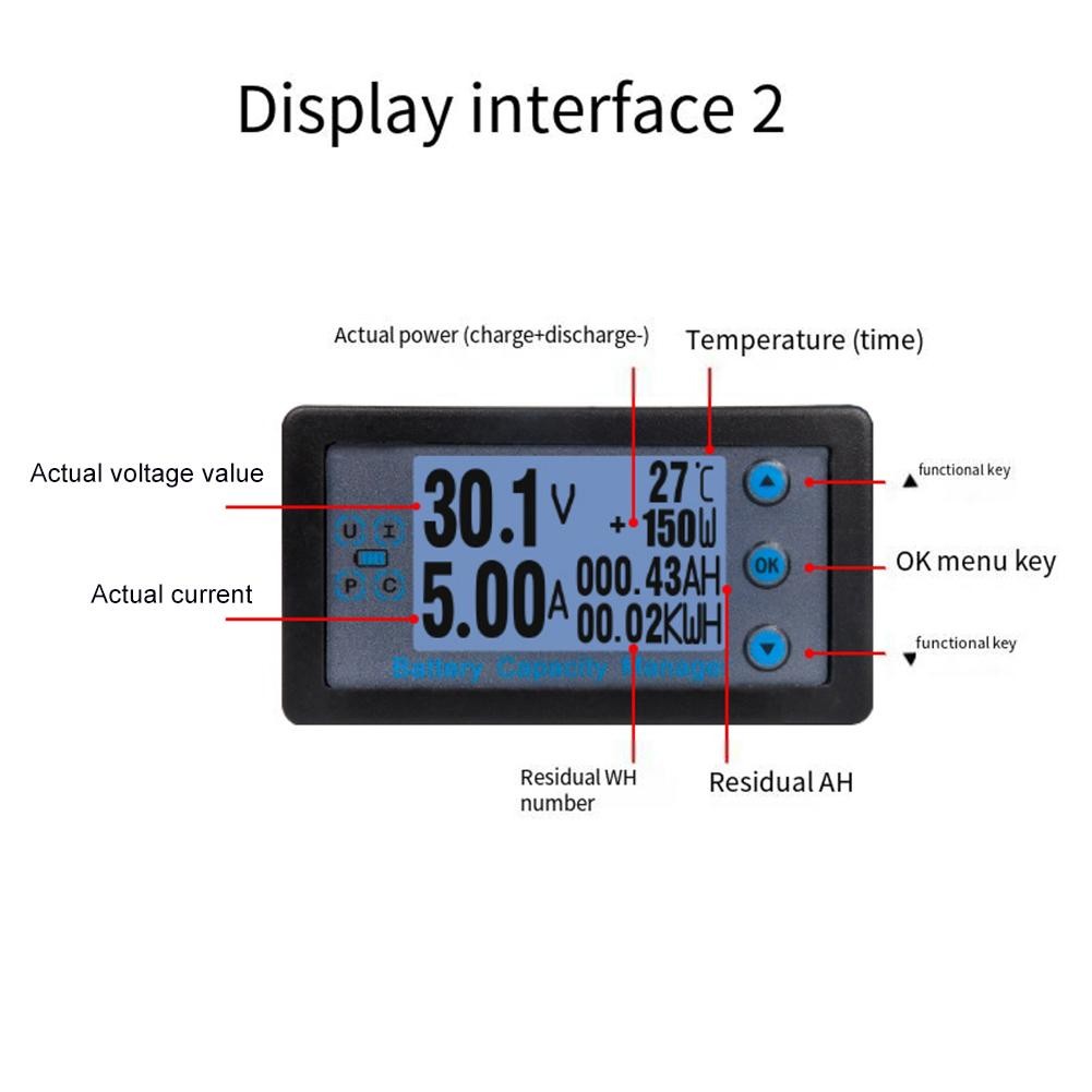 This is a multifunctional meter that can display voltage, real-time current, real-time power, remaining capacity, usage time and other physical parameters in real time. The meter uses a 12864 LCD display to display comprehensive and clear data. This meter is used in occasions where output voltage and current need to be monitored, as well as battery charging and discharging.