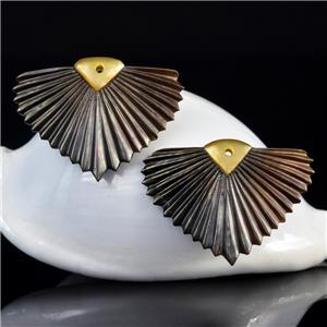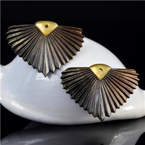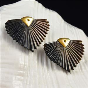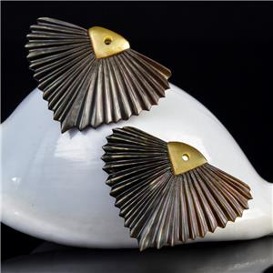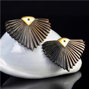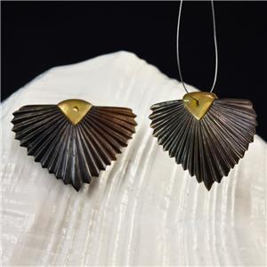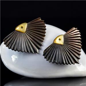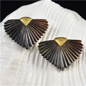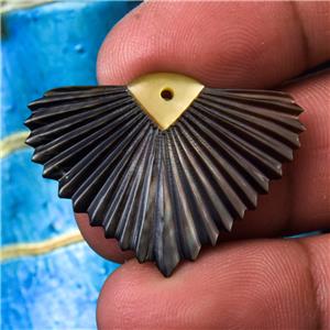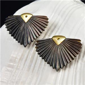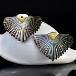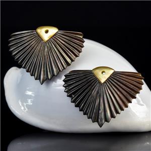 CARVED BLACK MOTHER-of-PEARL SHELL ART DECO FAN LEAF DESIGN EARRING PAIR – Handmade in Bali