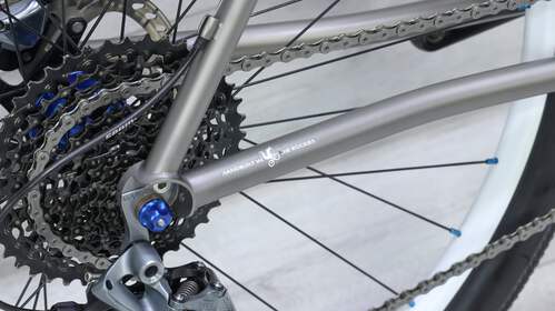 The 2006 Moots Mooto X YBB 25th Anniversary Edition is a limited-edition mountain bike that celebrates the brand's legacy of craftsmanship and innovation. Built with Moots' signature titanium frame, it incorporates the YBB (Why Be Beat?) suspension system, which provides a smooth and responsive ride over rough terrain by allowing the rear triangle to flex vertically. With its understated yet elegant design, the Mooto X is both lightweight and durable, offering a premium riding experience. The 25th Anniversary Edition features custom graphics and components, making it a collectible piece for bike enthusiasts and Moots fans alike.
