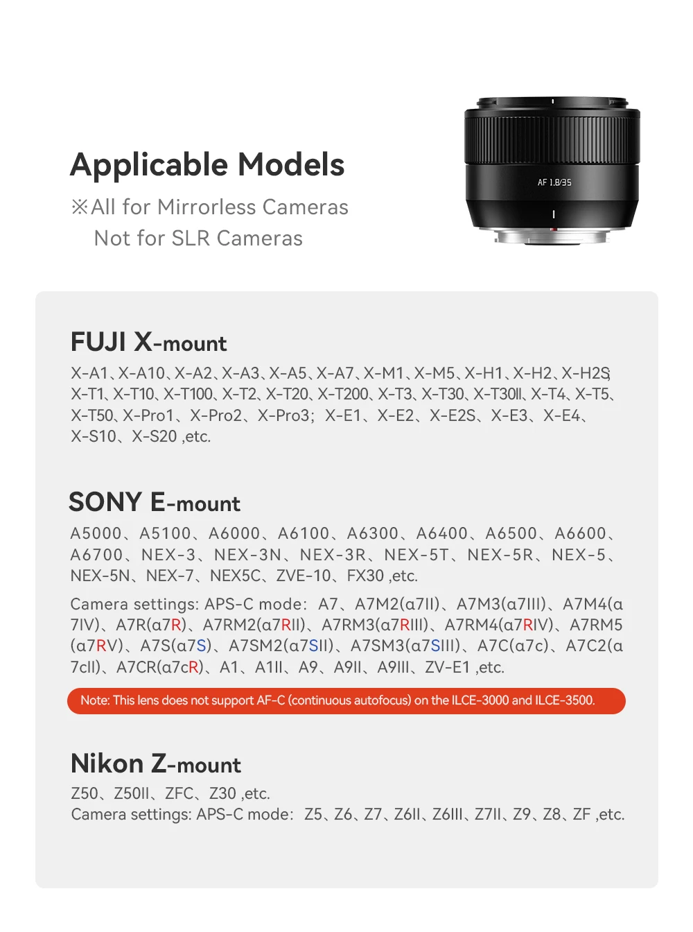 35mm F1.8 is compact and lightweight, making it easy to carry around and ensuring you don't feel weighed down when capturing the perfect moment on the go.