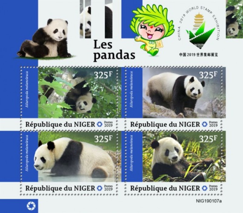 Country: Niger, Year of Issue: 2019, Type: 4 Stamp Sheet, Topic: Pandas, Bear, Animal, Giant