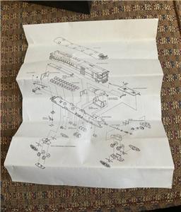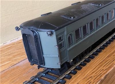 This train car appears to be new in box. It's missing a small instruction sheet for coupler and cattle guard installation as well as the foam cover that fits under the box lid.There is some dust on top of car, it appears to have been displayed on a shelf at sometime. Also there is very minor damage to the box paint.