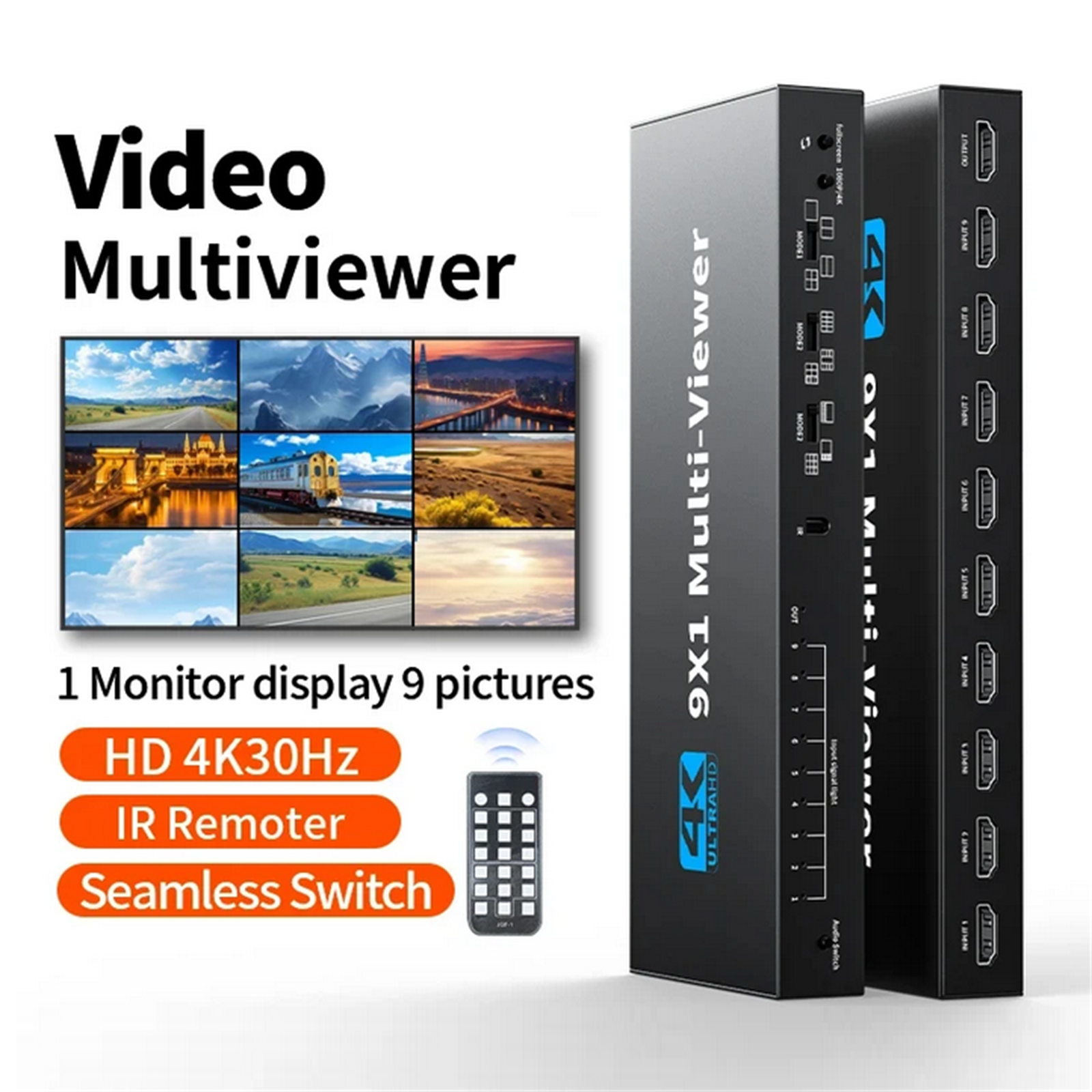 4K 30hz 9x1 HDMI-compatible Multiviewer 4K 9 In 1 Out 1080P Screen Multi Viewer HDMI Multi-Viewer Seamless Switch With IR