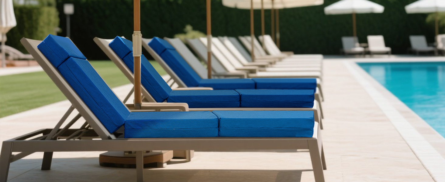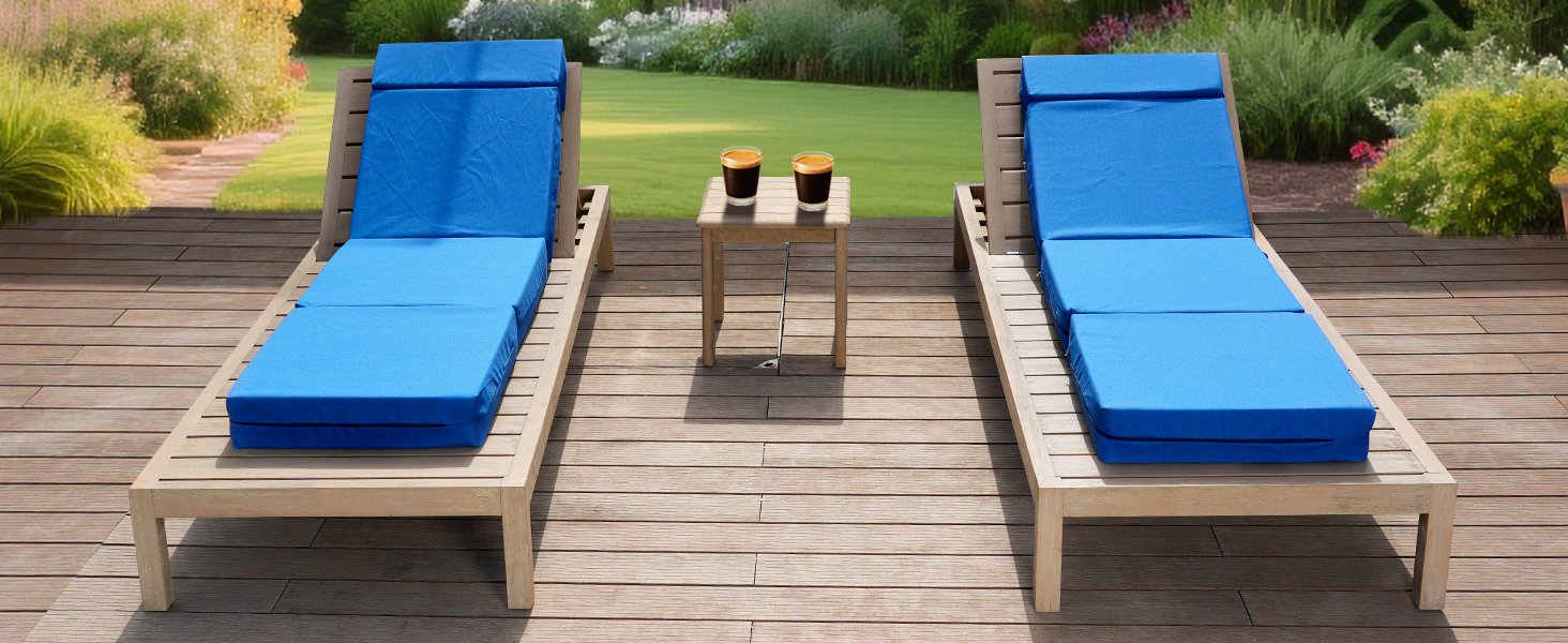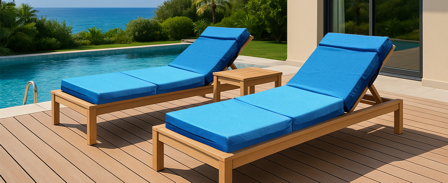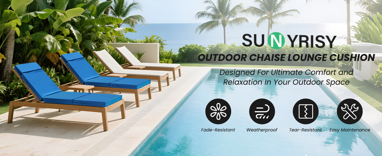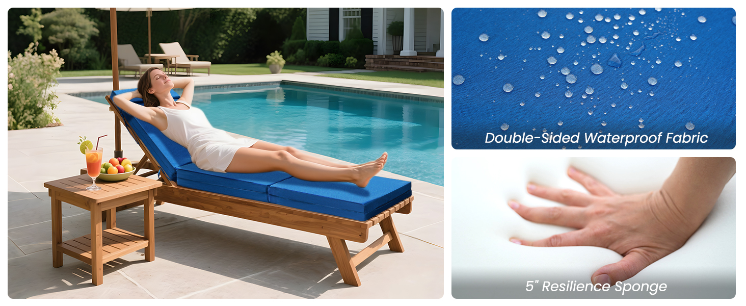 Double-Sided Waterproof: Relax confidently by the pool or at the beach with our double-sided waterproof deck chair cushion. The durable, quick-drying Oxford fabric offers excellent resistance against spills, light rain, and moisture, helping keep your cushion dry and comfortable,Crafted from premium 250g waterproof polyester with a 1000mm water resistance rating and splash resistance grade of 80–90(Tip: It is recommended that you cover it when not in use or when it rains, which can extend the life of the ounge chair cushions)