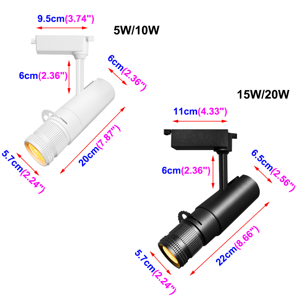 5W/10W/15W/20W COB LED 2-Line Track Lamp 10°~30°Beam Angle Focus Spotlight Zoom Ceiling Light