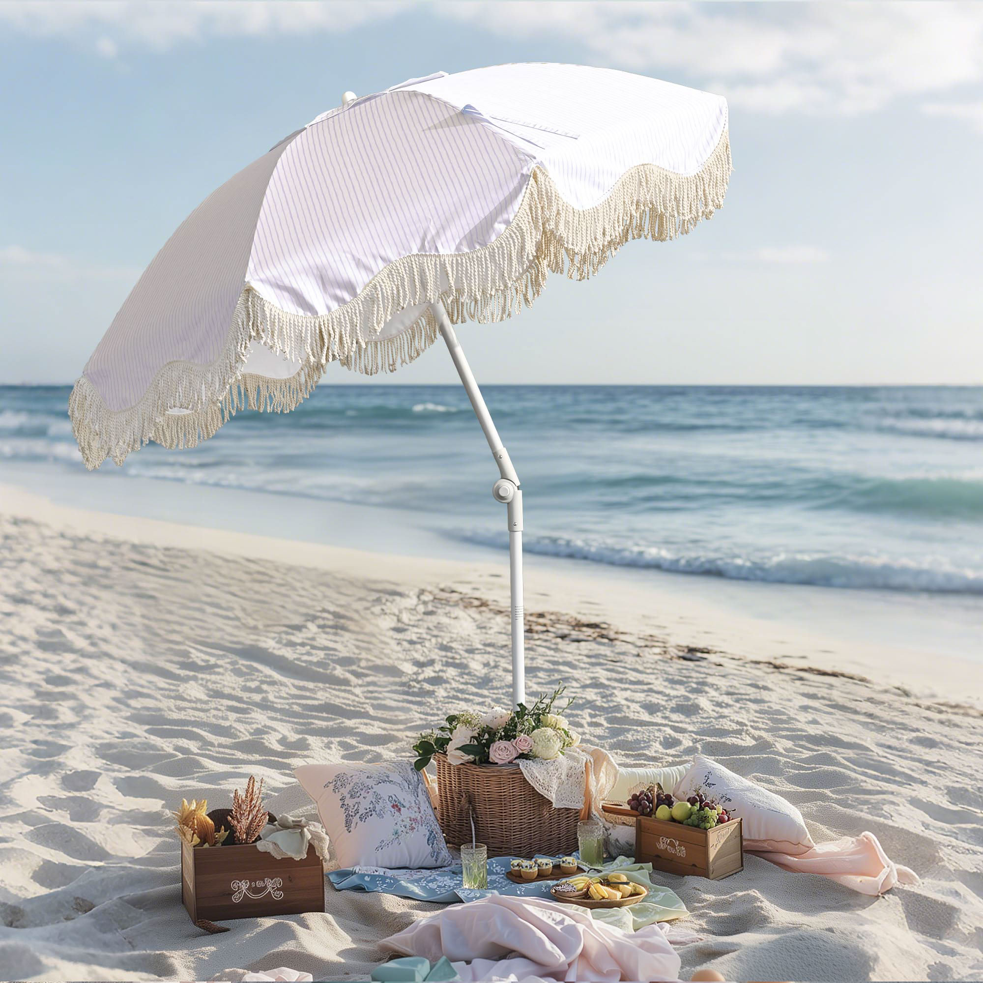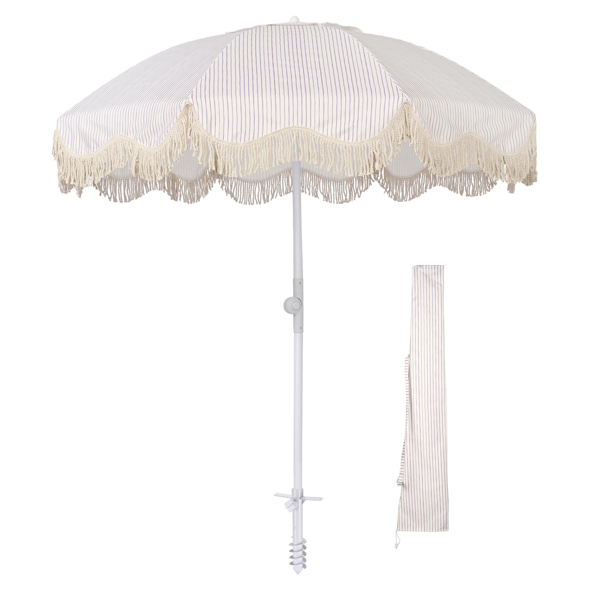 - Purple Striped Umbrella with Sand Anchor - Including a 6ft outdoor umbrella with cotton fringes and a sand anchor, this combo allows you to put up and secure the umbrella on the beach without tools, easy to enjoy the beach this summer