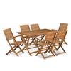 EAST WEST FURNITURE - AEHD7CANA - 7 PIECE PATIO GARDEN TABLE SET Seeking for the perfect patio dining set for your small outdoor gatherings? Look no further than this patio dining set includes a rectangular patio dining table with four arm chairs. The dining table set is designed to be both stylish and functional, with a folding feature of the chairs makes it easy to store when not in use. Whether you have a backyard, balcony, or porch, this outdoor patio dining sets will complement any outdoor area. With its natural oil finish, The dining table set creates an inviting, smooth, lustrous seating arrangement that will enhance any outdoor decor style. Plus, the environmentally friendly finish makes it a great choice for eco-conscious shoppers. Constructed from durable Acacia wood, this patio bistro dining furniture set is built to withstand various weather conditions and last for years to come. Another Key feature of this patio bistro dining furniture set is that it is easy to maintain. Restaining the furniture once a year can help to keep it looking brand new and extend its lifespan. The rustic design adds charm to any outdoor space, while the burr-free finish ensures a comfortable dining experience. Assembly is a breeze thanks to the easy-to-follow instructions included in the package. No additional tools are required, so you can have your new patio garden table set set up and ready to use in no time. Enjoy the warm weather with family and friends while soaking up the beauty of the great outdoors with this high-quality patio dining set. PATIO DINING TABLE FEATURES: Material: Acacia Wood Shape: Rectangular Finish: Natural Oil Dimensions: Lenght 60; Width 36; Height; 30 OUTDOOR DINING CHAIRS FEATURES: Material: Acacia Wood Chair Type: Folding Arm Chair Chair Back Style: Solid Back Finish: Natural Oil Dimensions: Lenght 21; Width 22; Height 35 INCLUDES: A Patio Table and 6 Folding arm chairs. N.B: No assembly is required for the Chairs.
